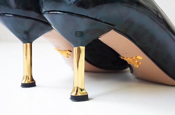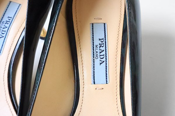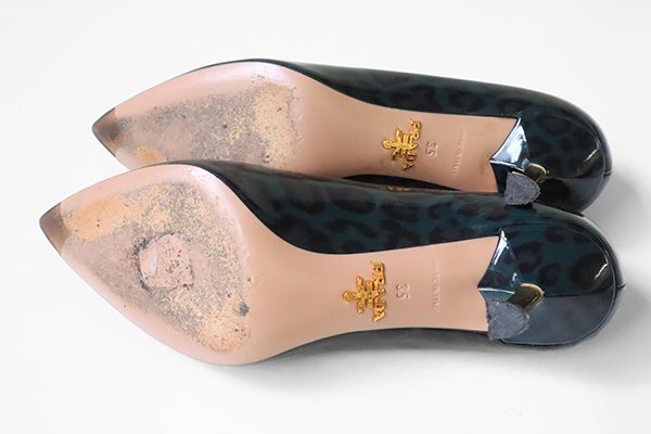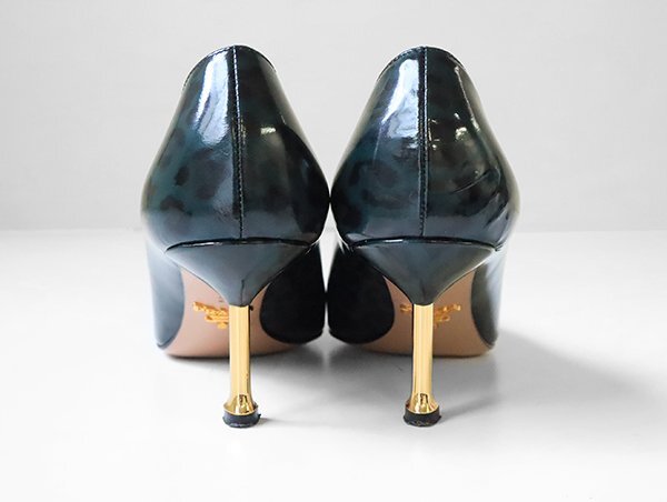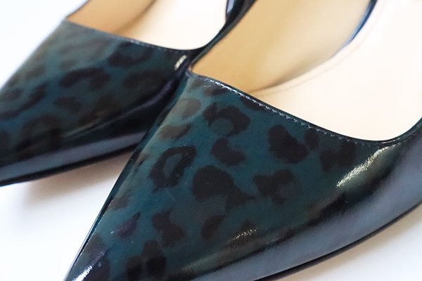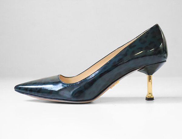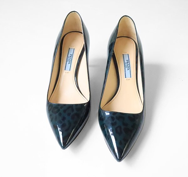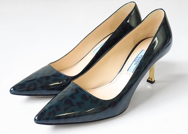 PRADA ◆ レオパード パンプス Dグリーン サイズ35 (ヒール高6cm) パテントレザー ヒョウ柄 ポインテッドトゥ プラダ ◆G106
