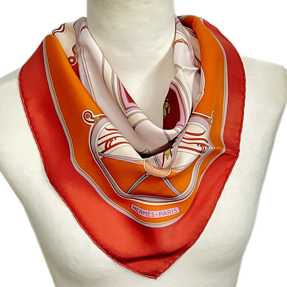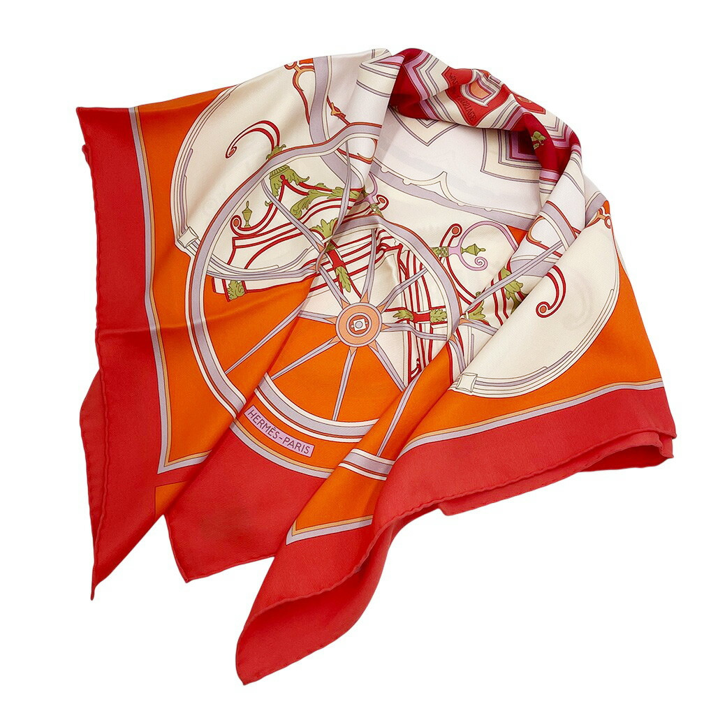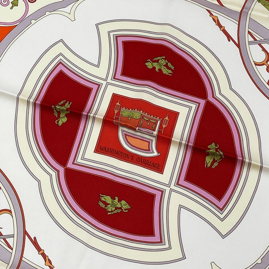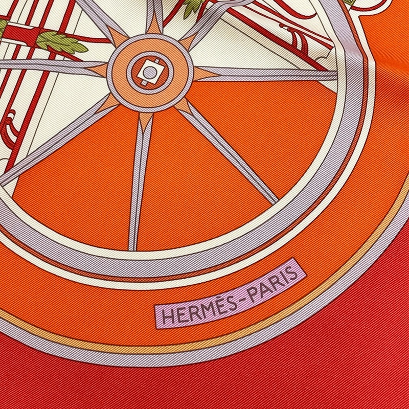 極美品 エルメス スカーフ HERMES カレ70 シルク 100% 正方形 WASHINGTON'S CARRIAGE ジョージワシントンの馬車 オレンジ レッド ブランド