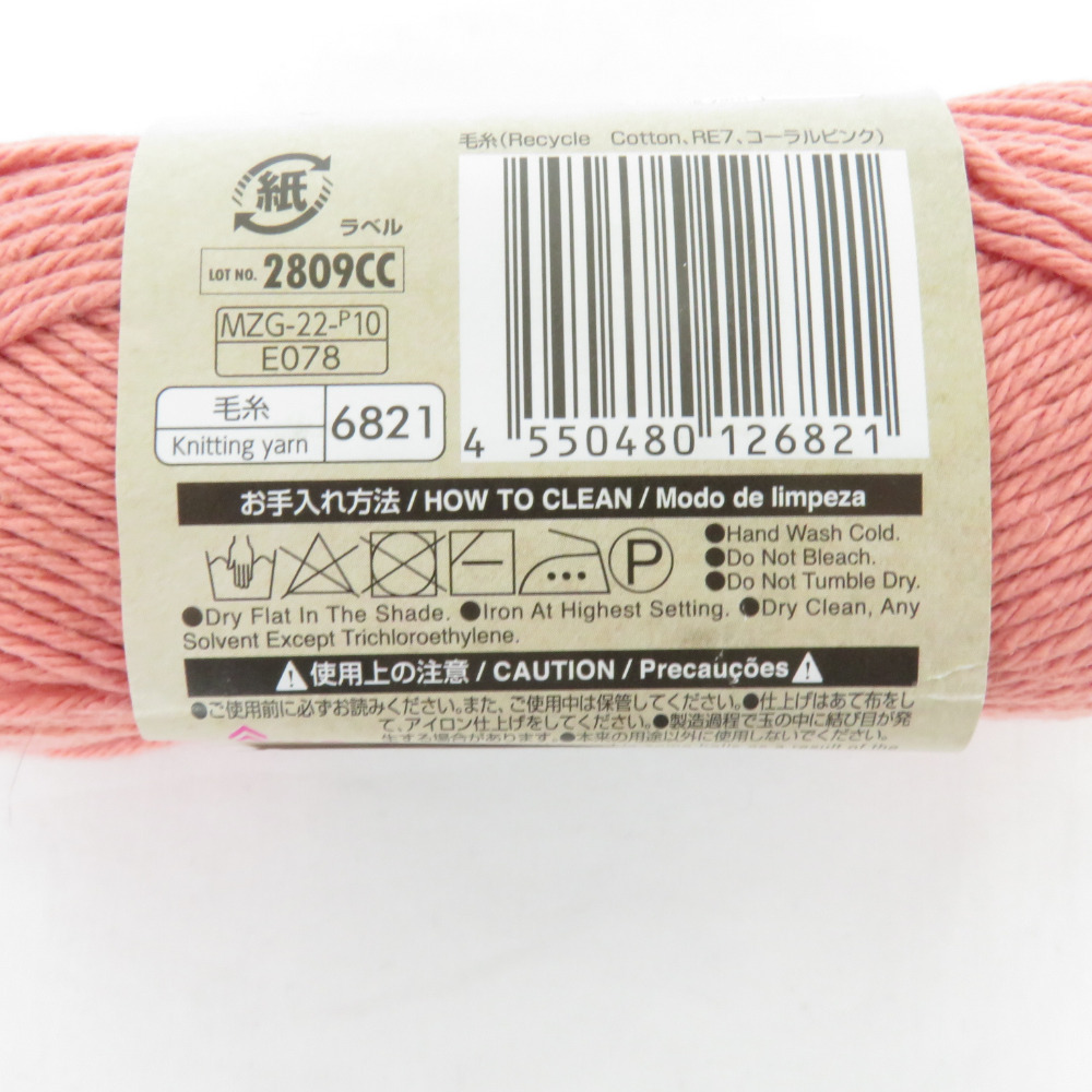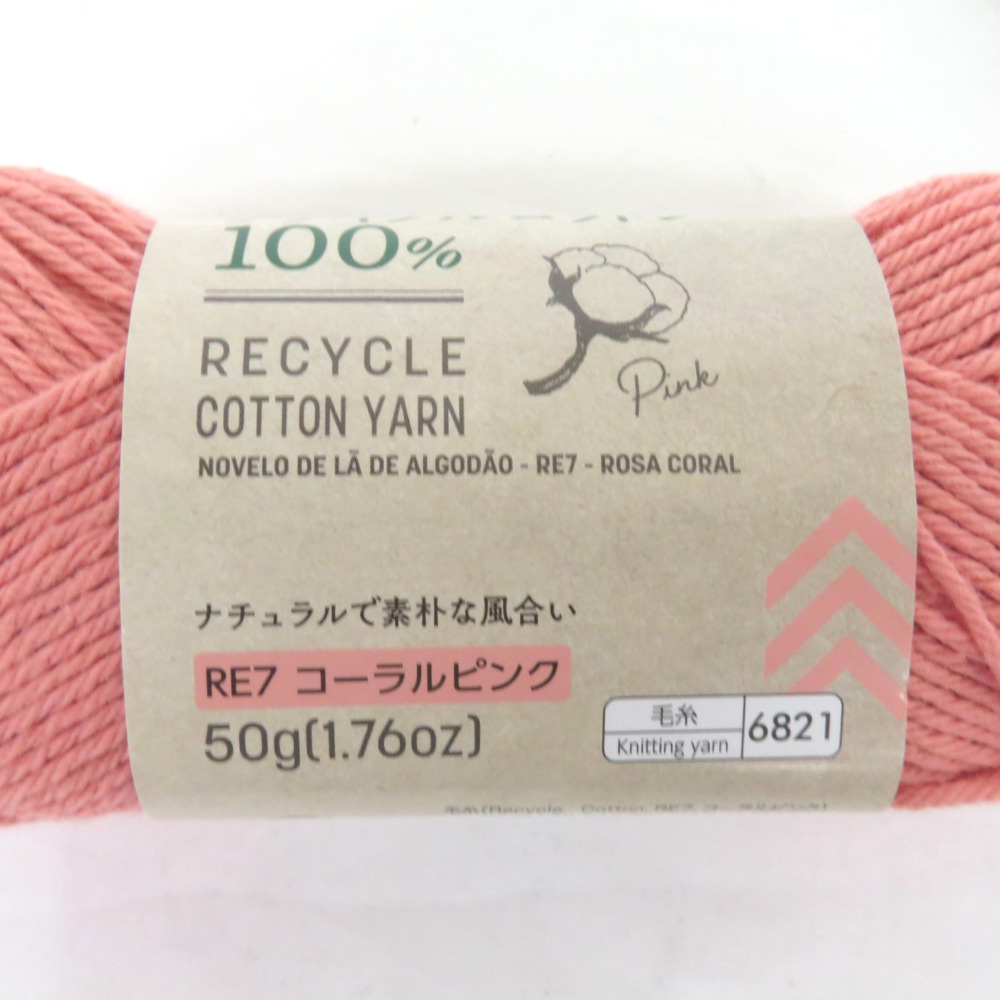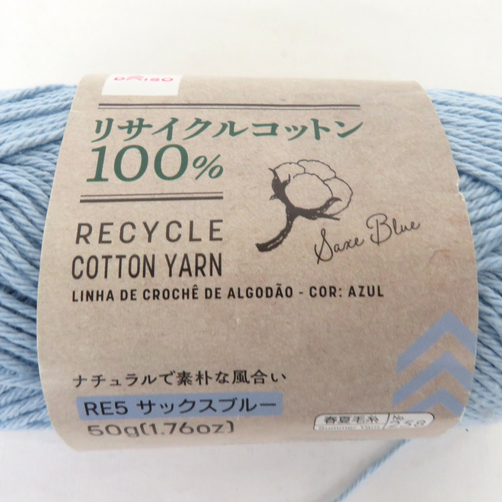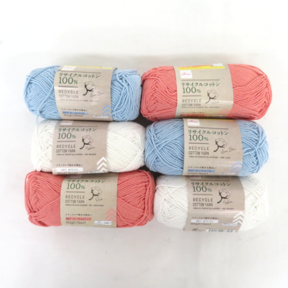 | ダイソー 毛糸 リサイクルコットンヤーン 6玉セット ホワイト サックスブルー コーラルピンク 1玉約50g 約120m リサイクルコットン100% |
