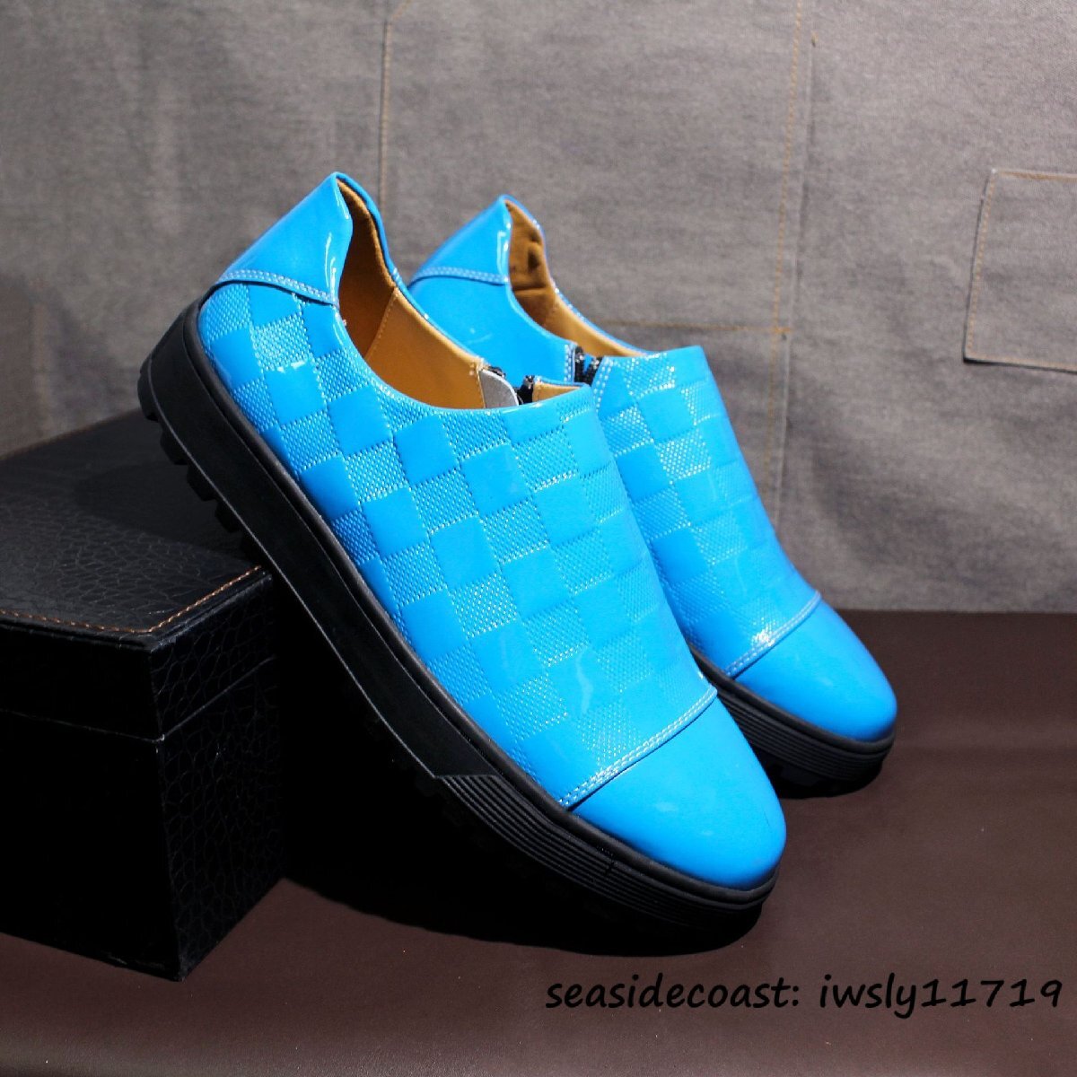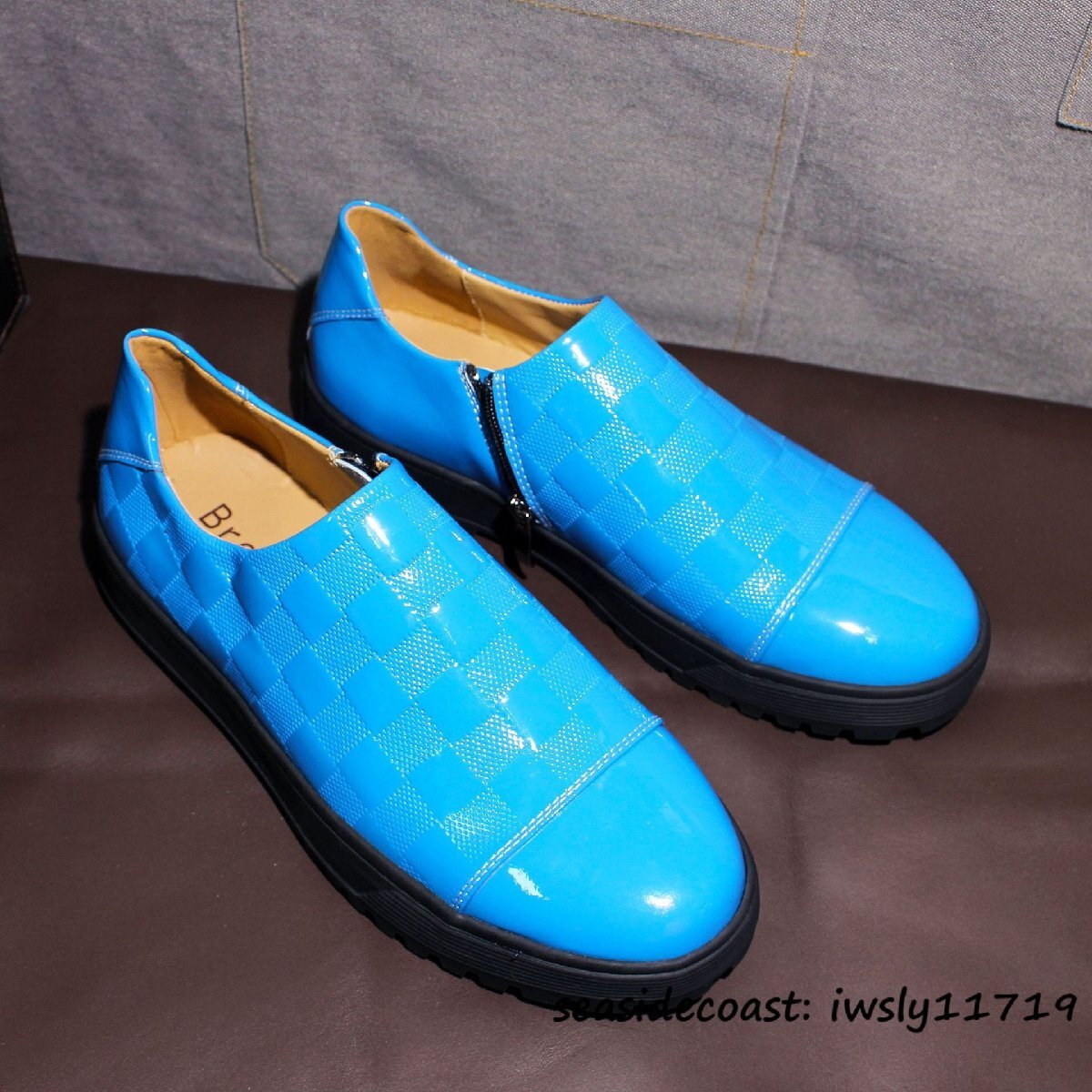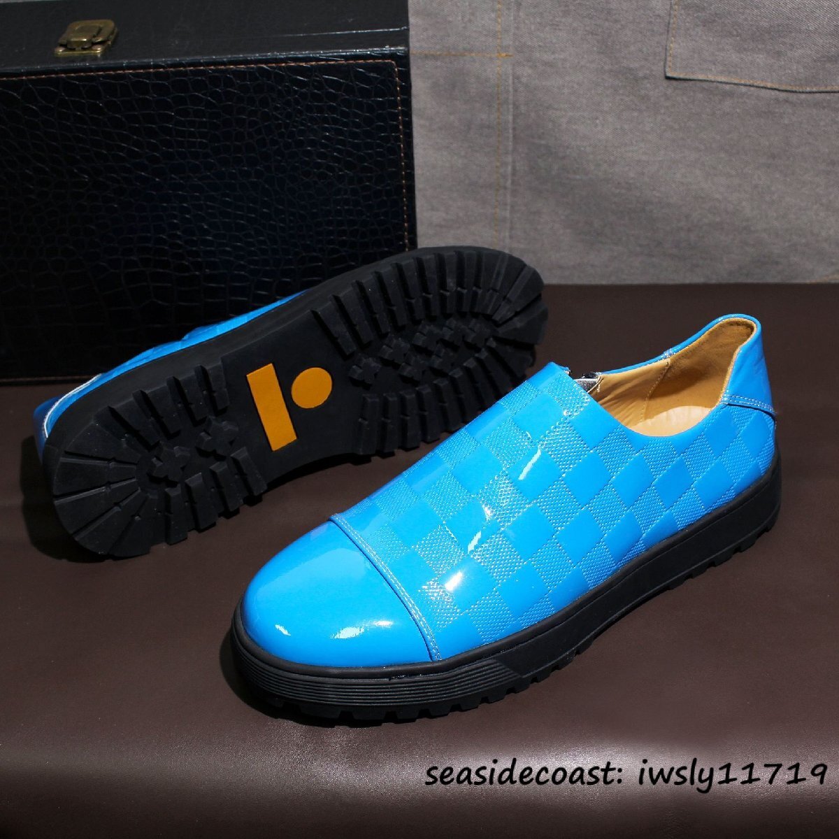 超美品■ローファー 本革 スリッポン メンズ 本牛革 ビジネスシューズ レザーシューズ 職人手作り ドライビングシューズ ブルー 26.5cm