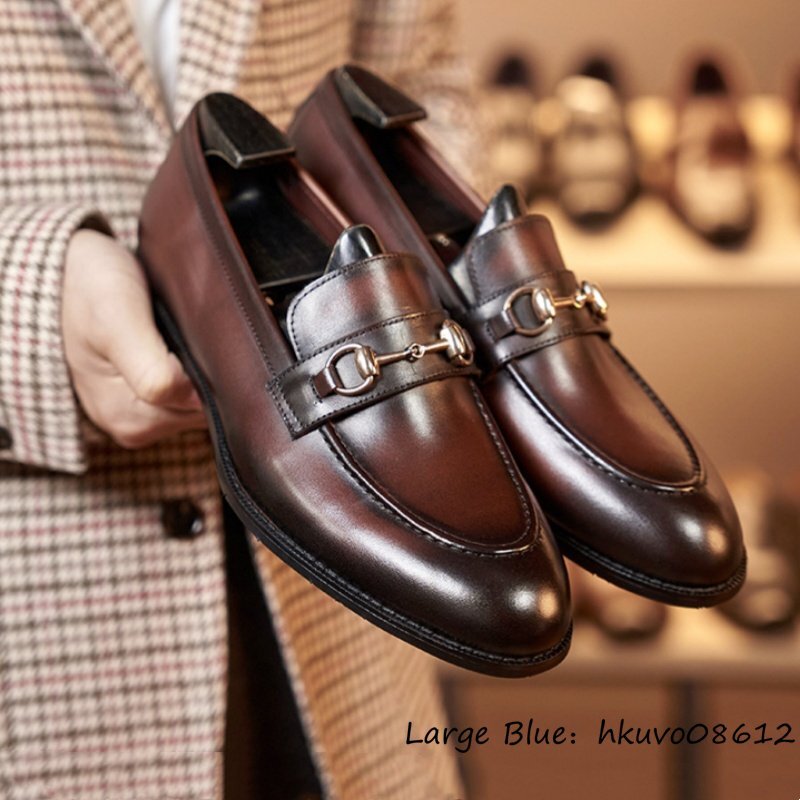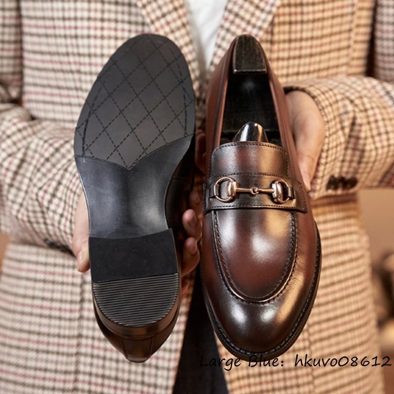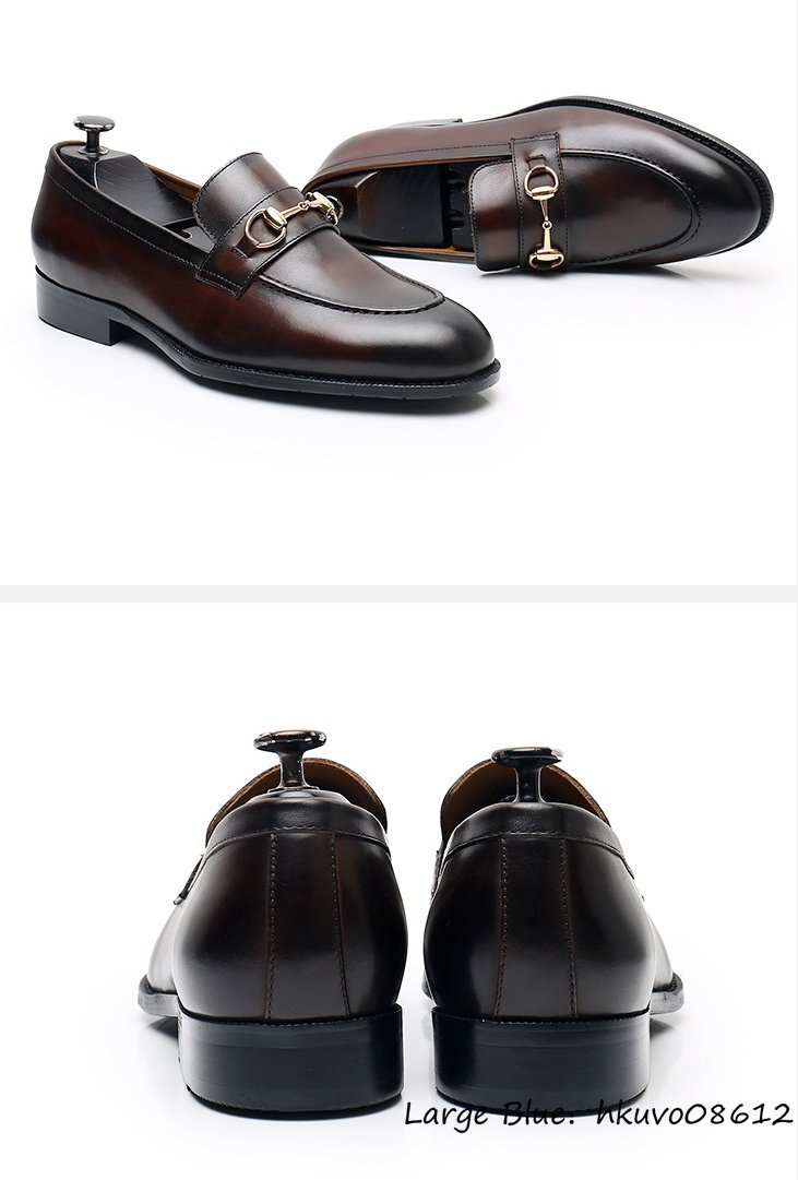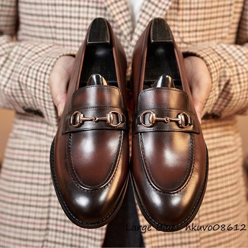 入手困難◇新品 ビジネスシューズ メンズ 職人手塗り上げ 高級牛革 革靴 ビットローファー 本革レザーシューズ フォーマル ブラウン 25.0cm