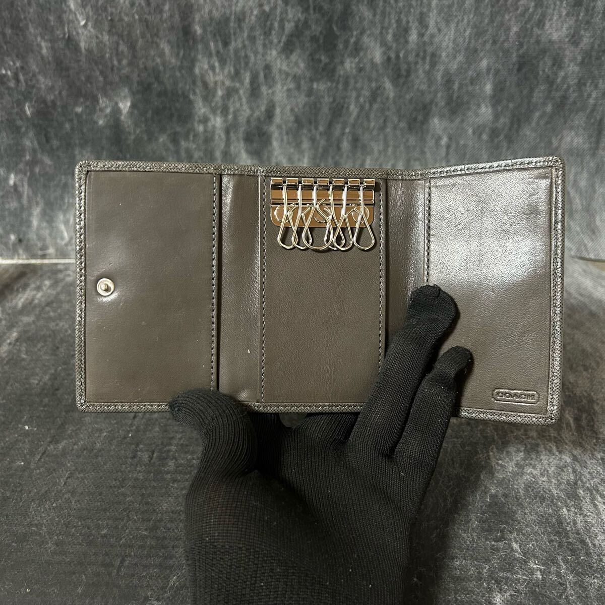 COACH コーチ 6連キーケース キーホルダー オプアート トライフォールド ダークブラウン レザー *U