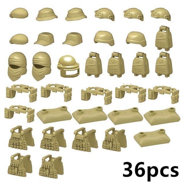 レゴ互換 装備品 36点セット 防弾チョッキ 武器 土嚢 カーキ色