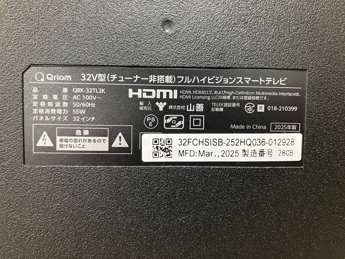 山善 テレビ チューナーレス 液晶 32インチ ネット動画対応 地上波受信なし フルハイビジョン QRK-32TL2K