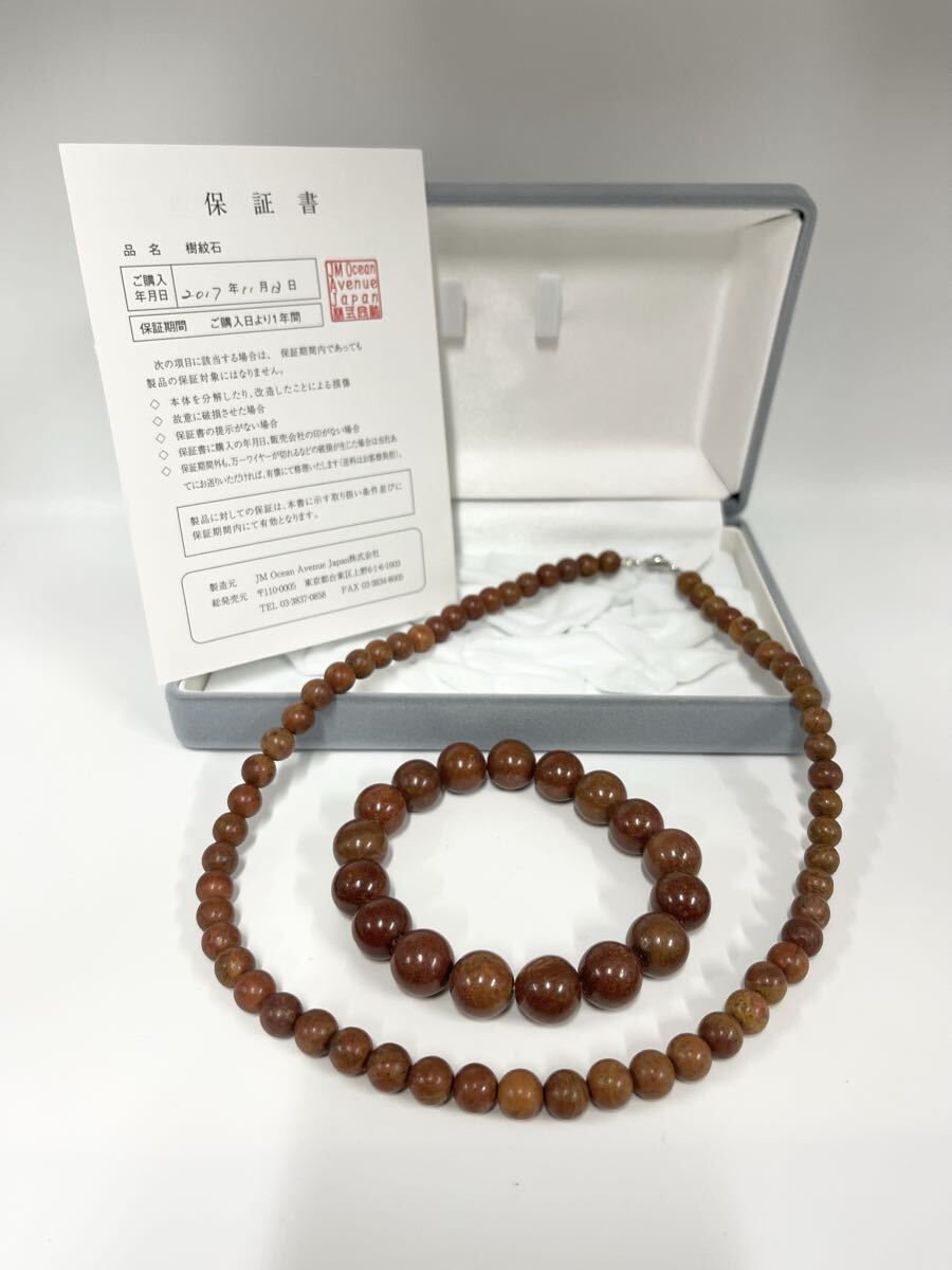 樹紋石のブレスレット、ネックレスのセットです。