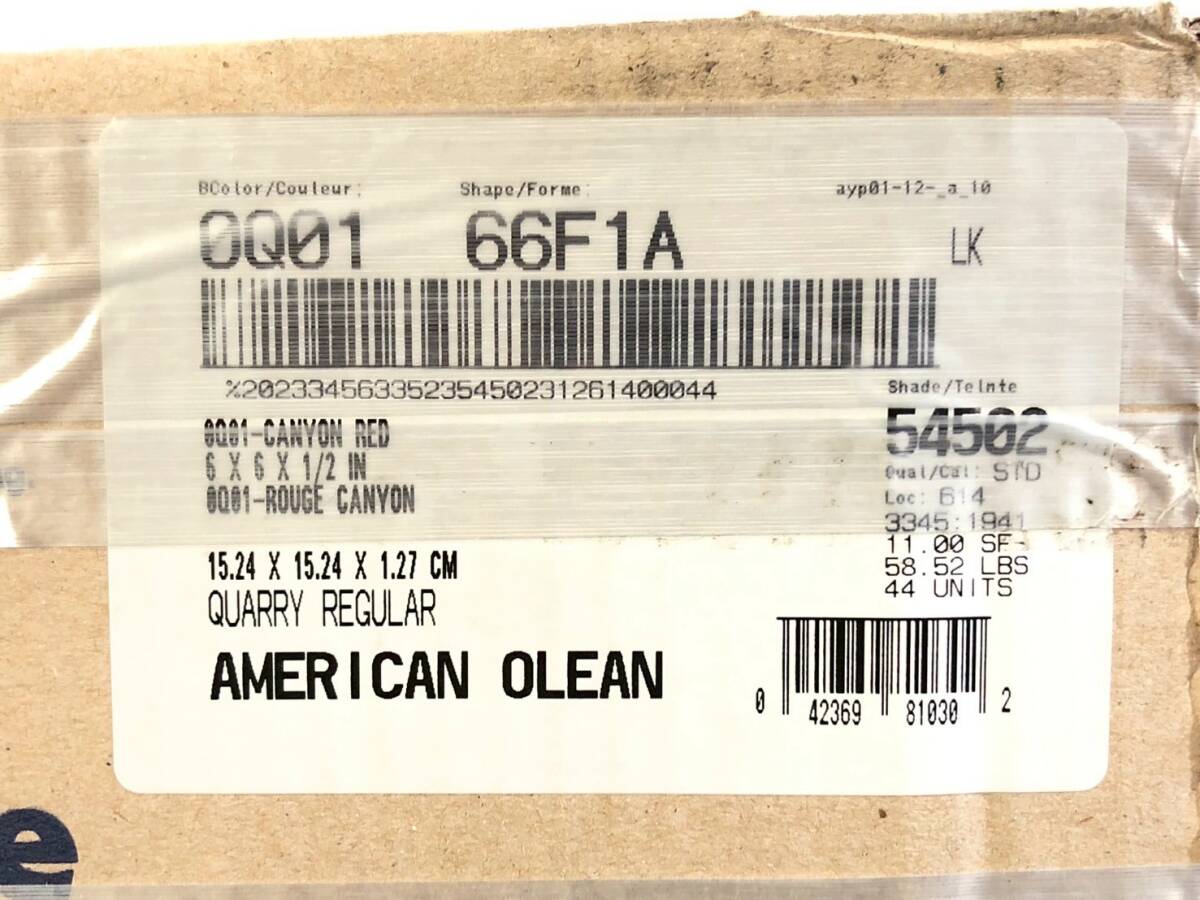 【米軍放出品】未使用 長期保管 AMERICAN OLEAN クォーリータイル 6インチ 44枚入 CANYON RED 床用タイル(180)☆BJ20IK#25