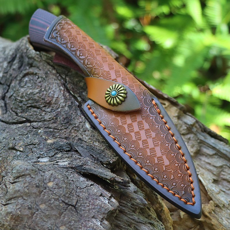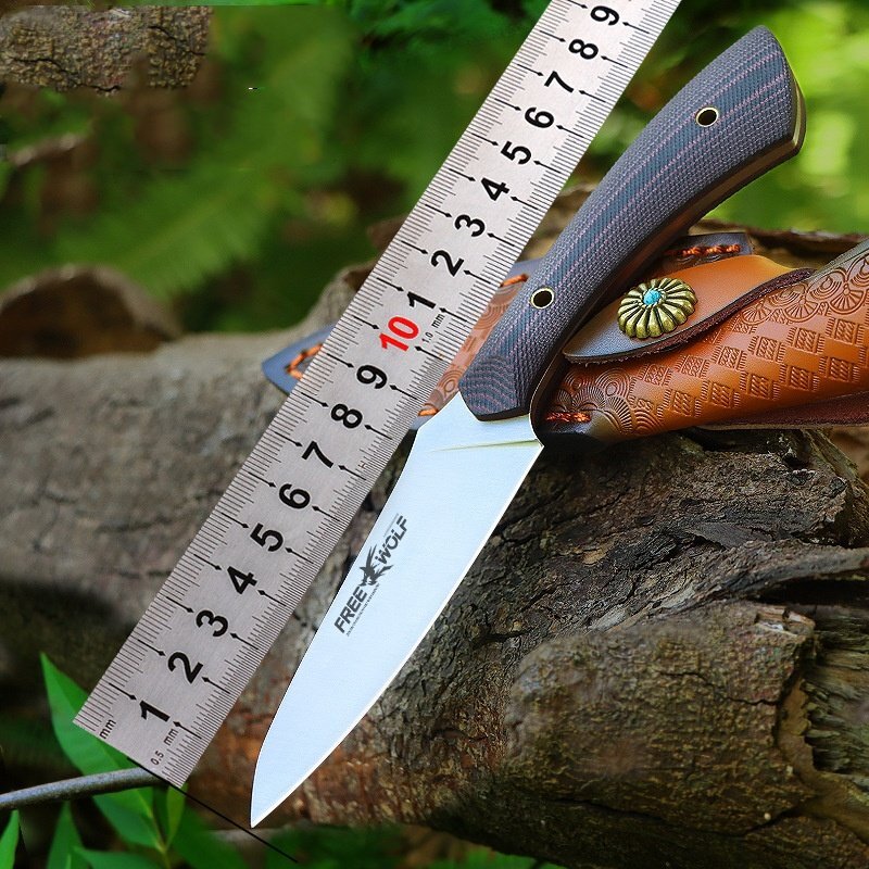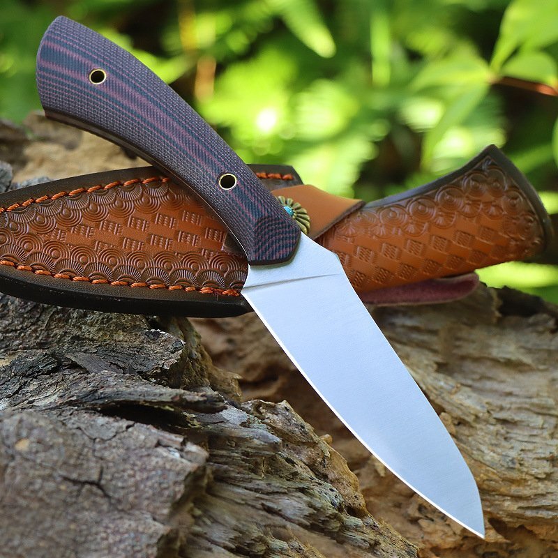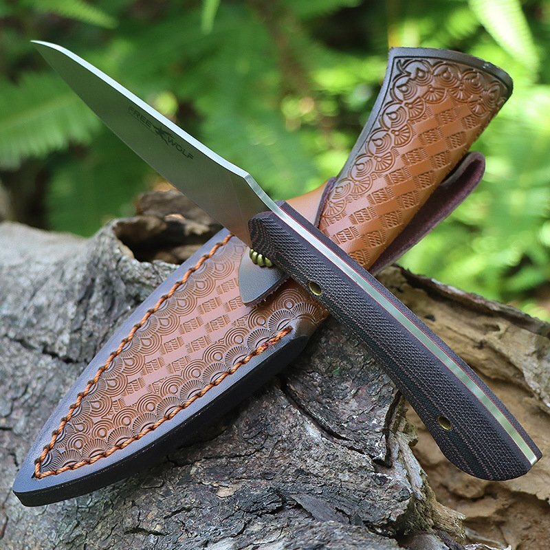 超高品質 アウトドアナイフ D2鋼製 薪割り 革製シース付き キャンプ 釣り ハイキング 野外登山 狩猟ナイフ