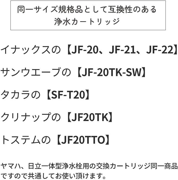 | Fukata 浄水カートリッジ互換 JF-22-F 4個セット INAX サンウエーブ タカラ クリナップ トステム 高塩素除去タイプ JF-20TK-SW SF-T20 JF20TTO JF20TK 遊離残留塩素除去 一体型浄水栓 eモダンタイプ FSタイプ 浄水器 厚生労働省規格日本国内食品安全検査クリア | |