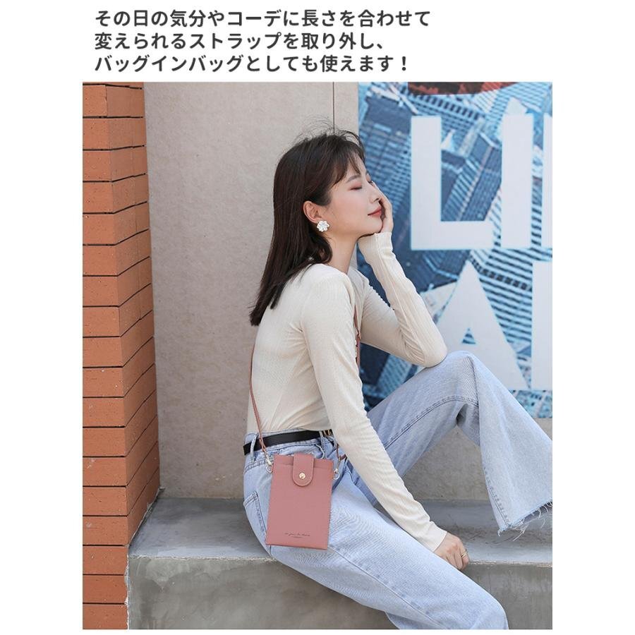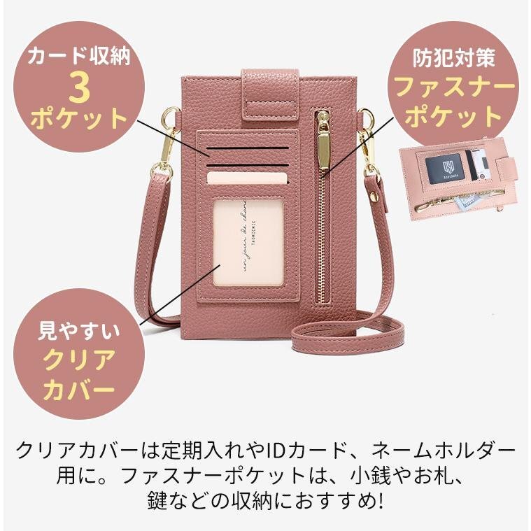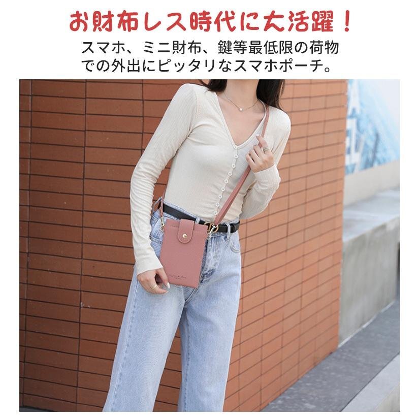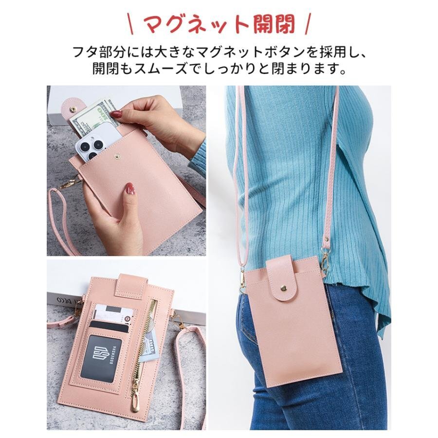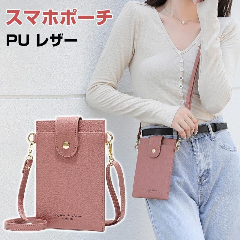 スマホポーチ スマホ ショルダー ポーチ バッグ レディース スマホポシェット 斜め掛け スマートフォン ケース 財布 スマホポシェット ストラップ 紐 PU レザー かわいい おしゃれ きれいめ 縦型 携帯ケース スマホショルダー 入れたまま iphone
