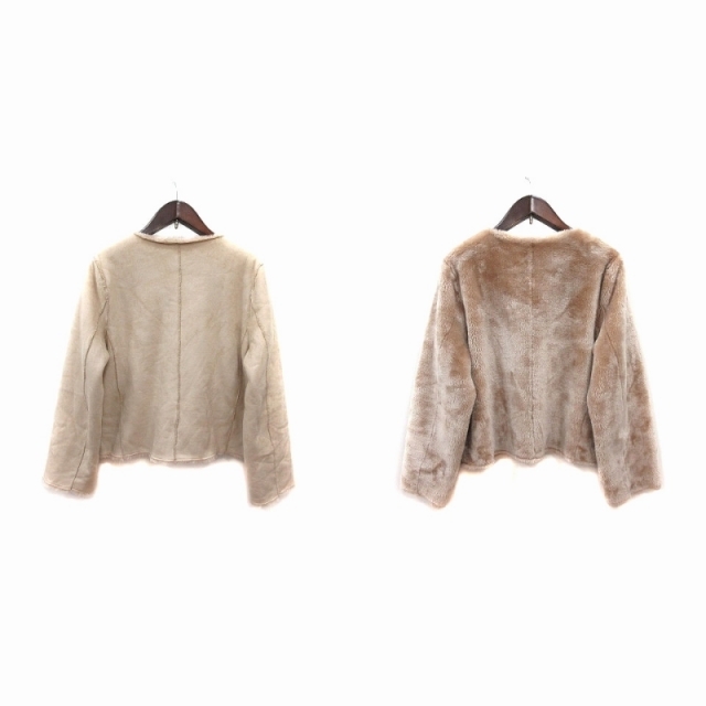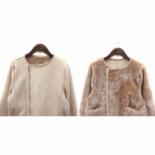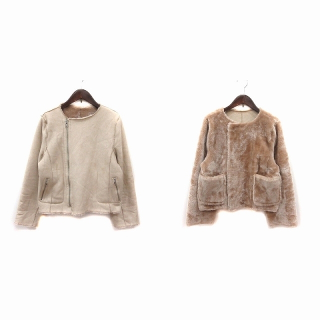 クイーンズコート QUEENS COURT ノーカラージャケット リバーシブル フェイクムートン フェイクファー ジップアップ 2 レディース