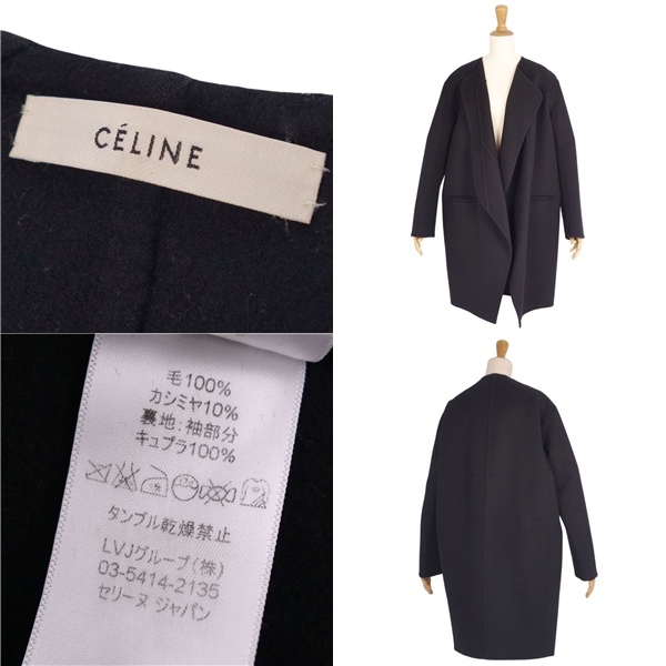 | 美品 セリーヌ CELINE コート フィービー期 ロングコート ボタンレス ウール カシミヤ レディース 36(S相当) ブラック |
