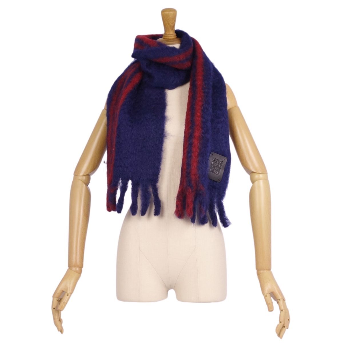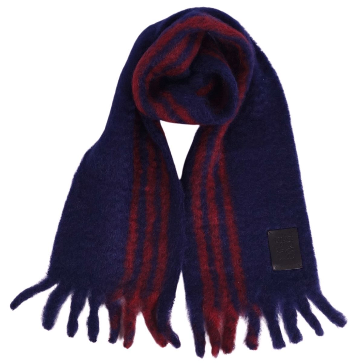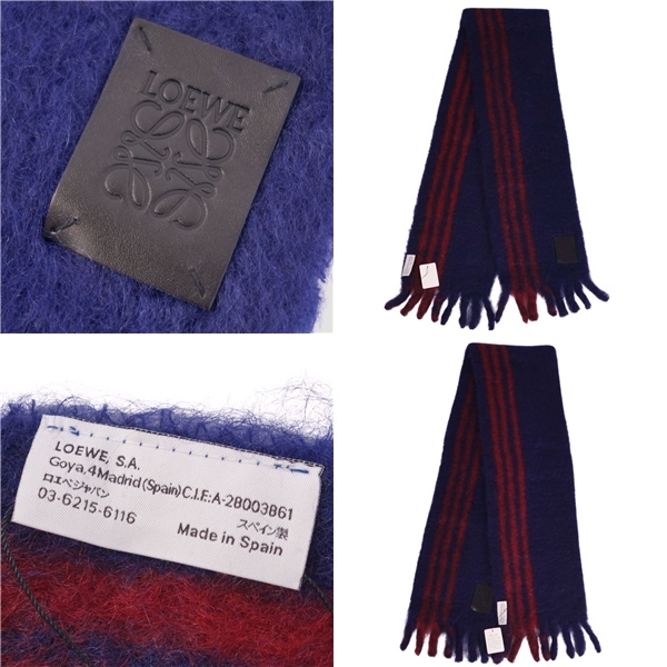 | 未使用 ロエベ LOEWE マフラー ストール フリンジ モヘア ウール レディース スペイン製 ネイビー |