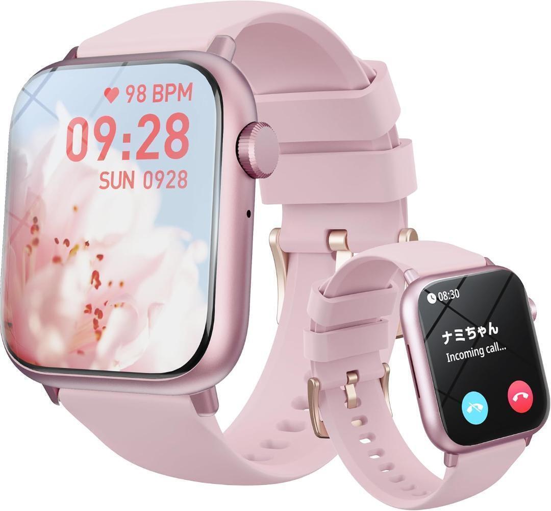 スマートウォッチ 1.85インチ大画面 通話機能付き LINE 着信通知 Smart Watch iPhone アンドロイド対応 活動量計 歩数計 睡眠トラッカ カロリー記録 女性生理周期管理 ダイエット 腕時計 100多種類な運動モード スポーツウォッチ 200種文字盤 日本語対応 超軽量 ピンク 彼女/母/姉妹/妻にプレゼント