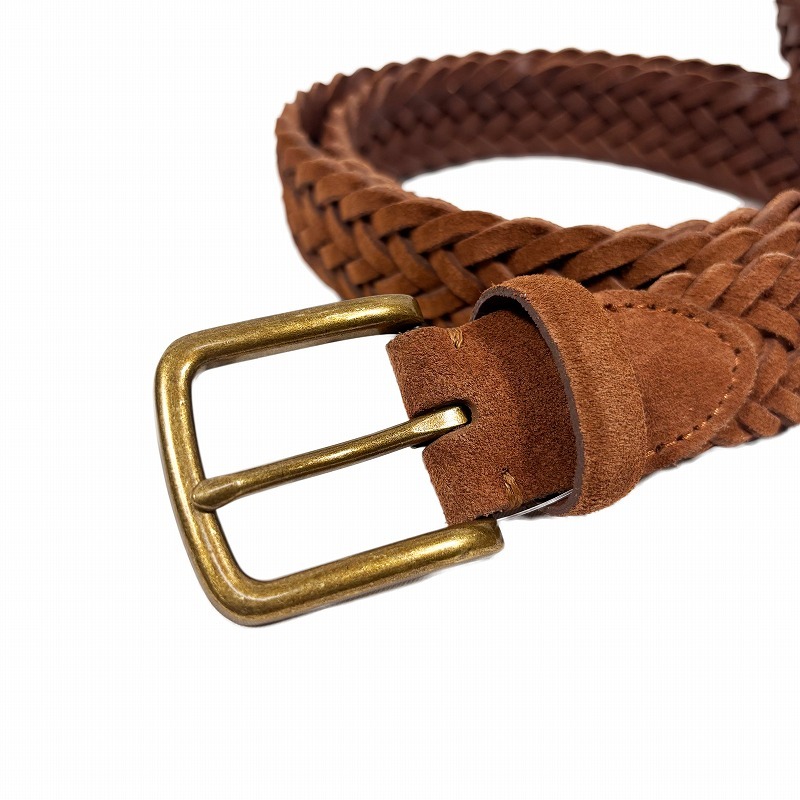 上質なスウェードレザーを使用した編み込みデザインのレザーベルト。