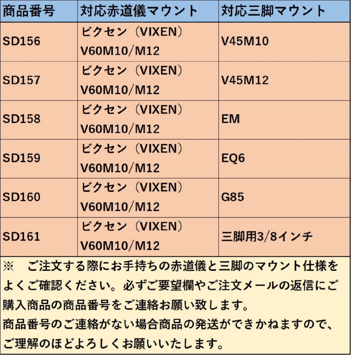 SD156-SD161 MBユニットハーフピラースリムタイプ ビクセン(VIXEN)V60M10(45)/M12マウント赤道儀対応の出品です。