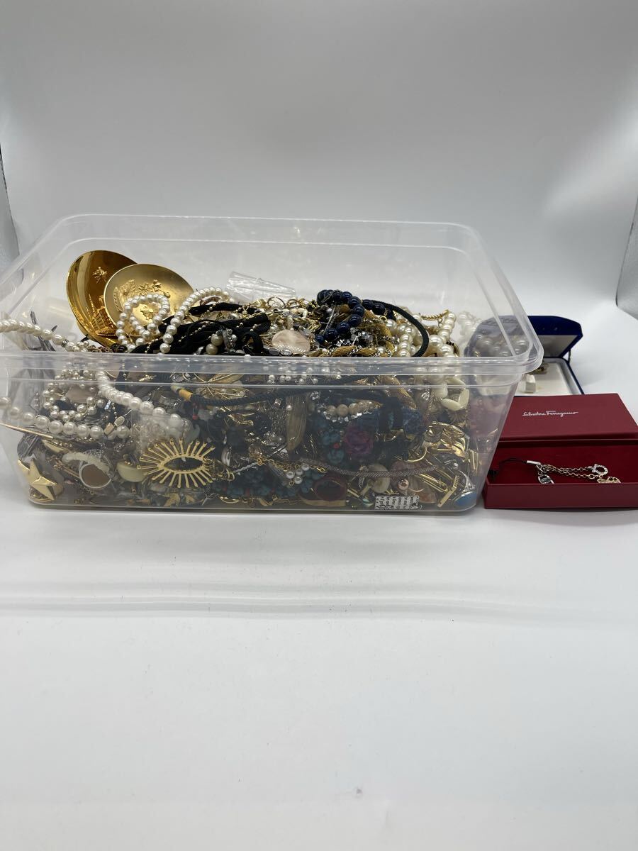 A mixed lot of approximately 4.5kg of assorted jewelry & accessories, including an elegant Salvatore Ferragamo charm.