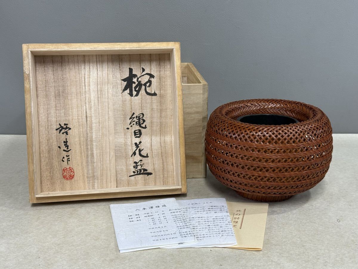 八木澤啓造 作 椀 縄目花藍 竹芸 竹細工 竹工芸 煎茶道具 共箱 真作保証 です。