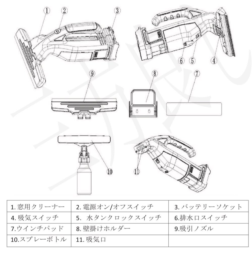 窓用クリーナー ? 吸引ノズル ? スプレーボトル ? 窓用パッド ? 壁掛けホルダー