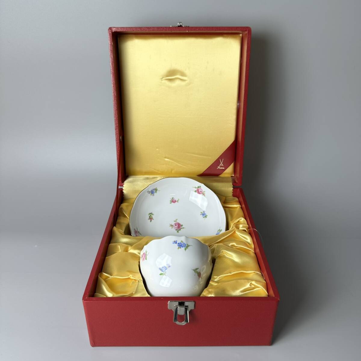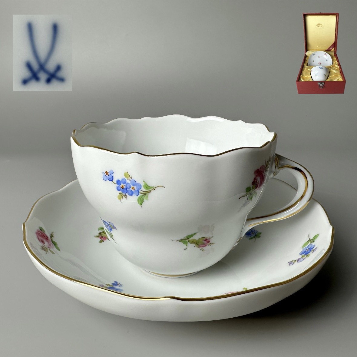 コレクター買取品 Meissen マイセン 散らし小花 カップ&ソーサー 金彩 箱付 珈琲碗揃 西洋磁器