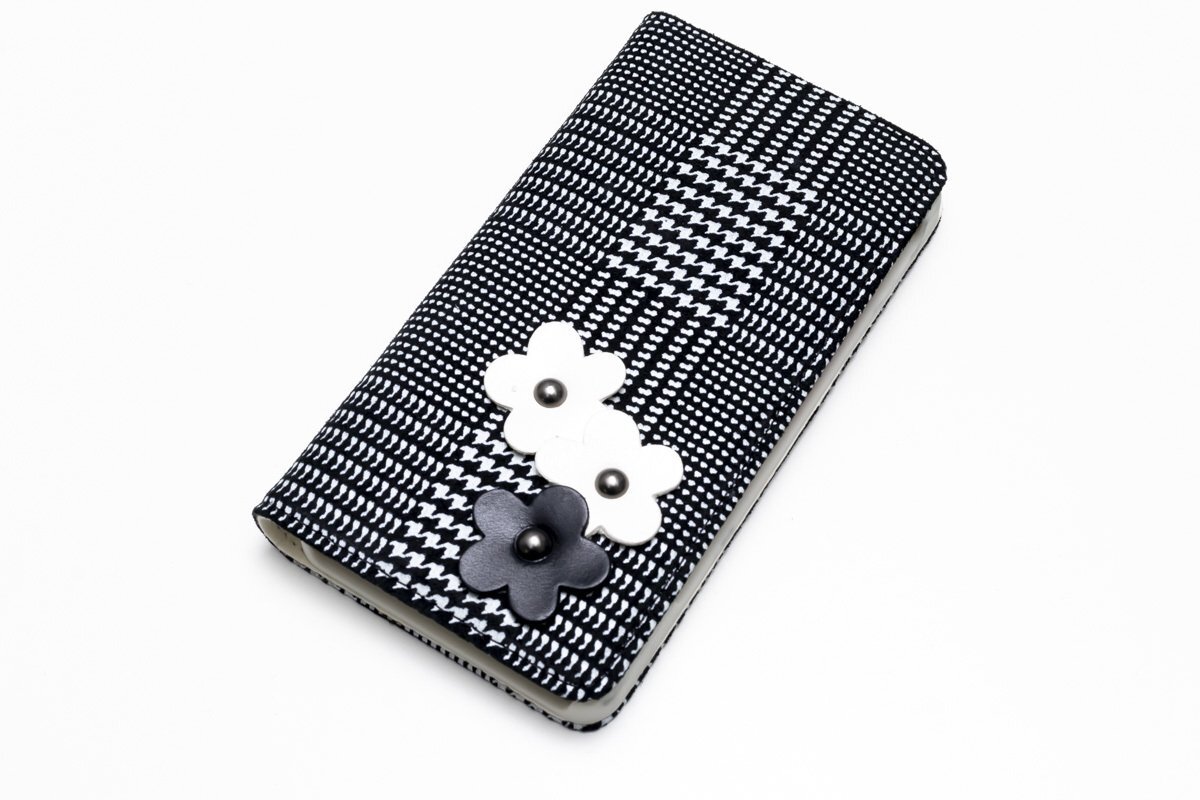 新品 訳あり iPhone6 iPhone6s 高級 手帳型 イタリア産 本革 ケース ガレスフラワー ブラック×ホワイト modamania モーダマニア