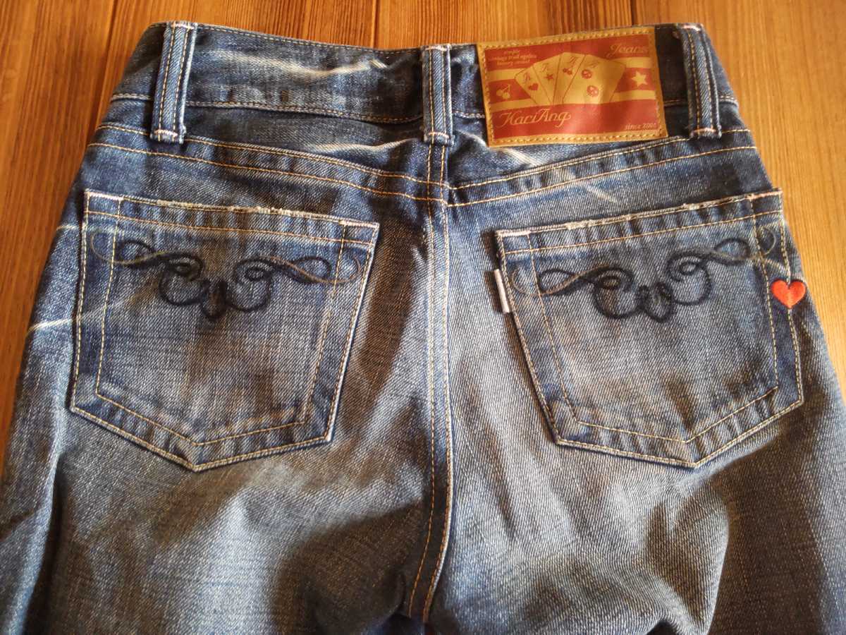 ★発送方法★ハートの刺繍がポイントになったコットン100%のデニムパンツになります(*^-^*)本革パッチで日本製のお品です着用感は薄く特に目立つ大きな難はございませんが、裾を切っておりますので画像6枚目をご覧ください保管や洗濯によるしわ等についてはご容赦ください中古品をご理解いただける方、細かいことを気になさらない方の入札をお待ちしております※実物に近いお色が出るように撮影しておりますがモニター環境により色味が異なる場合がございます【サイズ】 24【実 寸】 ウエスト:約31.5cm ヒップ:約42cm 股上:約20cm 股下:約65cm わたり幅:約21cm 裾幅:約cm【素 材】 コットン100% ラベル部分:羊革※素人の平置き採寸になりますので多少の誤差はお許しください