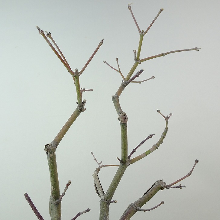 | ■植物ですので撮影時期や季節によって剪定などの手入れにより写真から変化がございます。撮影日をご確認のうえ、ご注文ください。 ■春頃~7月上旬。葉すかし、葉刈りをおこないます。目的として全体的な枝や葉の量を減らし風通しを良くし、幹にしっかりと日光を当てるため。 【紅葉盆栽】 春先に芽吹き、夏頃には新緑、秋頃には紅葉、冬は寒樹姿と四季を通して楽しめる植物です。 もみじには、葉色、葉形、樹形、春先から真紅や紫紅色の芽を吹くもの、秋の紅葉で黄色に染まるものや斑入り葉、獅子葉、細葉、枝垂れ性など非常に多くの種類があります。 |