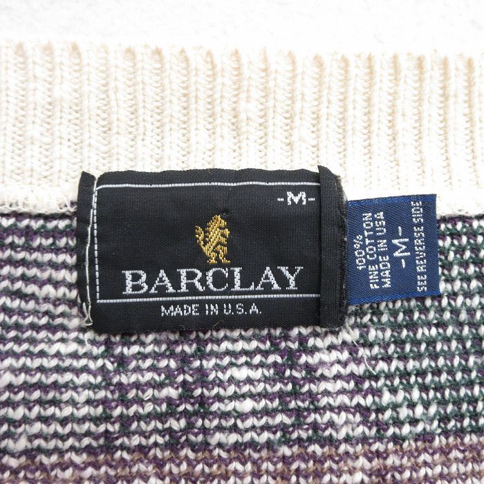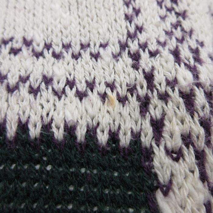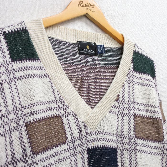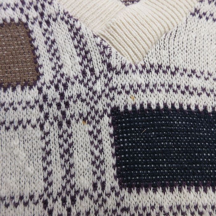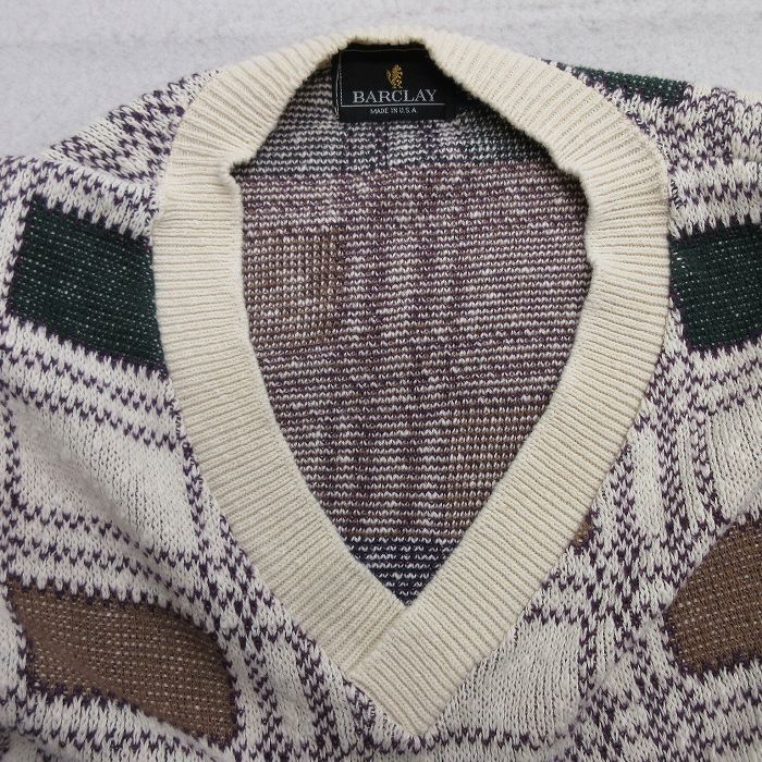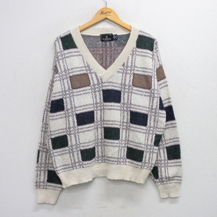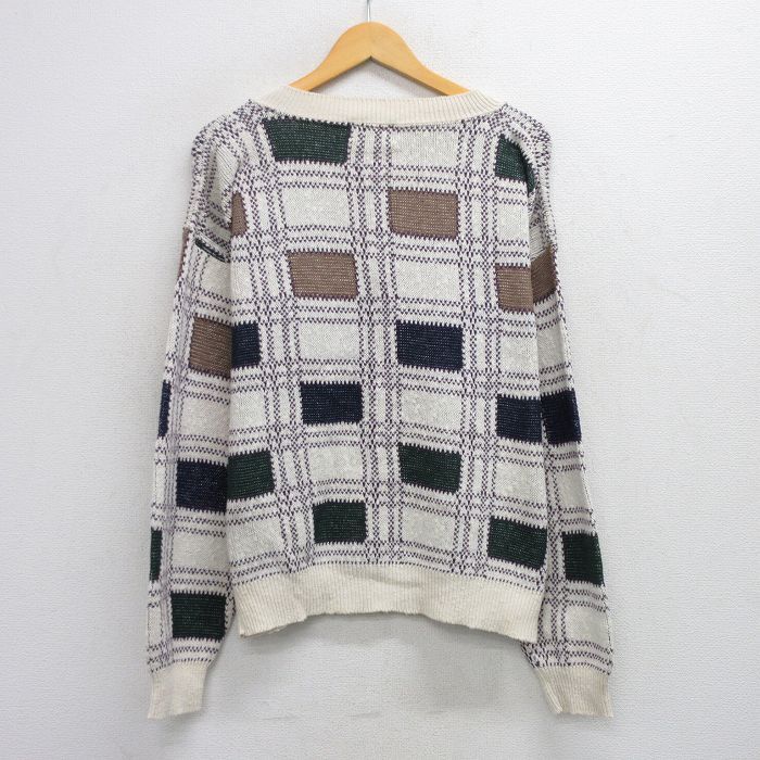 【商品名】 L★古着 長袖 セーター メンズ 90年代 90s コットン Vネック USA製 白他 チェック