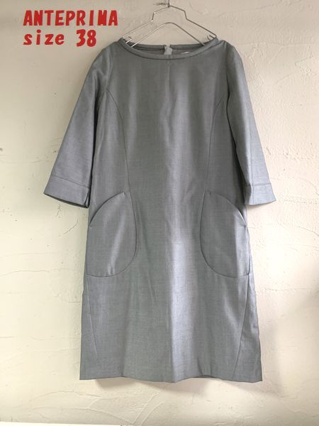 ◆O15◆ANTEPRIMA アンテプリマ ウールシルク 6分袖ミドル丈ワンピース  グレー サイズ38