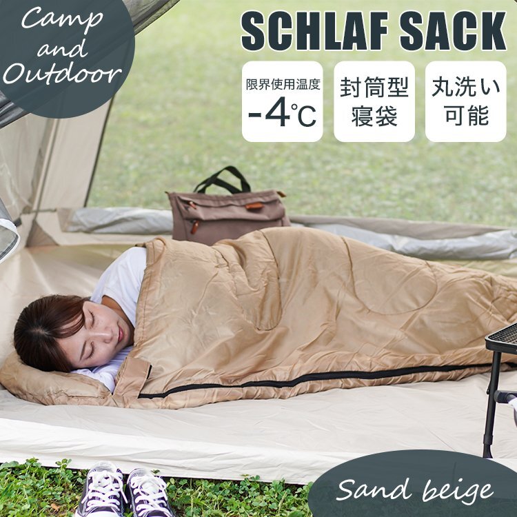 自由な空間で居心地の良い寝袋 封筒型寝袋です! 封筒型寝袋はマミー型に比べ中が広く、圧迫感がないので、布団のようにゆったり眠れます。 ひざを自由に曲げることもでき、寝返りもできます! ファスナーで開閉でき、温度調節も簡単。 また封筒型だからできるフルオープンで、暑い時期はマットやブランケットとして、春や秋には普通の寝袋として使用できます! 使わないときはクルクルッとまとめてコンパクトにバッグに収納。 持ち運びにも困りません。 【商品仕様】 カラー:サンドベージュ サイズ:(約)220×71cm 収納サイズ:(約)26×44cm 重量:(約)1300g 耐寒温度: -4℃(快適温度:25℃~8℃) 【注意事項】 ・不安定な場所や熱に弱い敷物の上で使用しないでください。 ・商品は、モニターによって色合いが異なって見える場合があります。 ・仕様・デザインは改良のため予告なく変更することがあります。 |