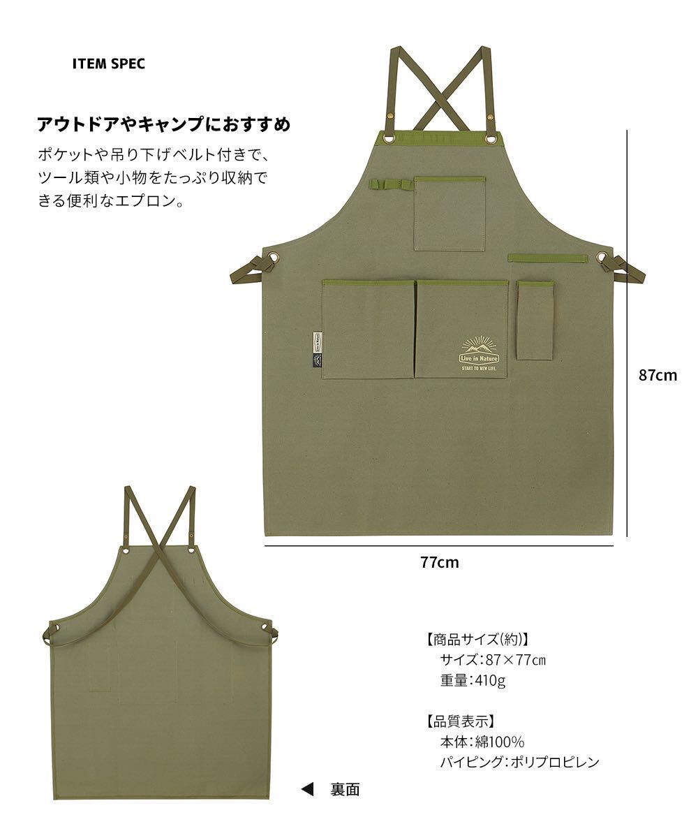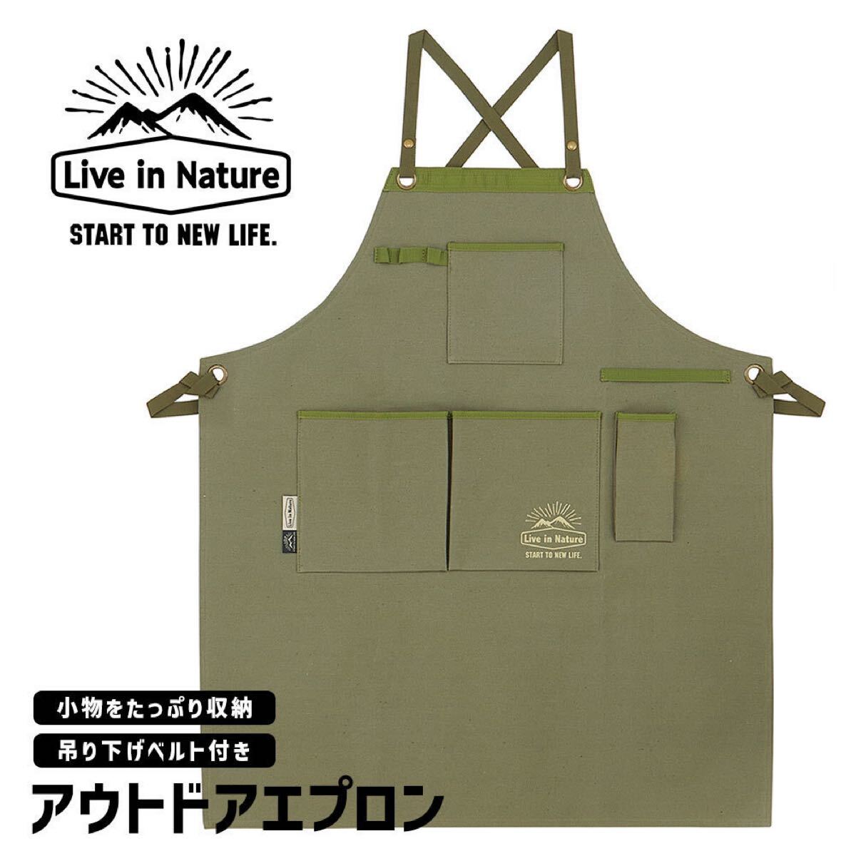 LIVE IN NATURE アウトドアエプロン (カーキ) キャンプ アウトドア ガーデニング エプロン