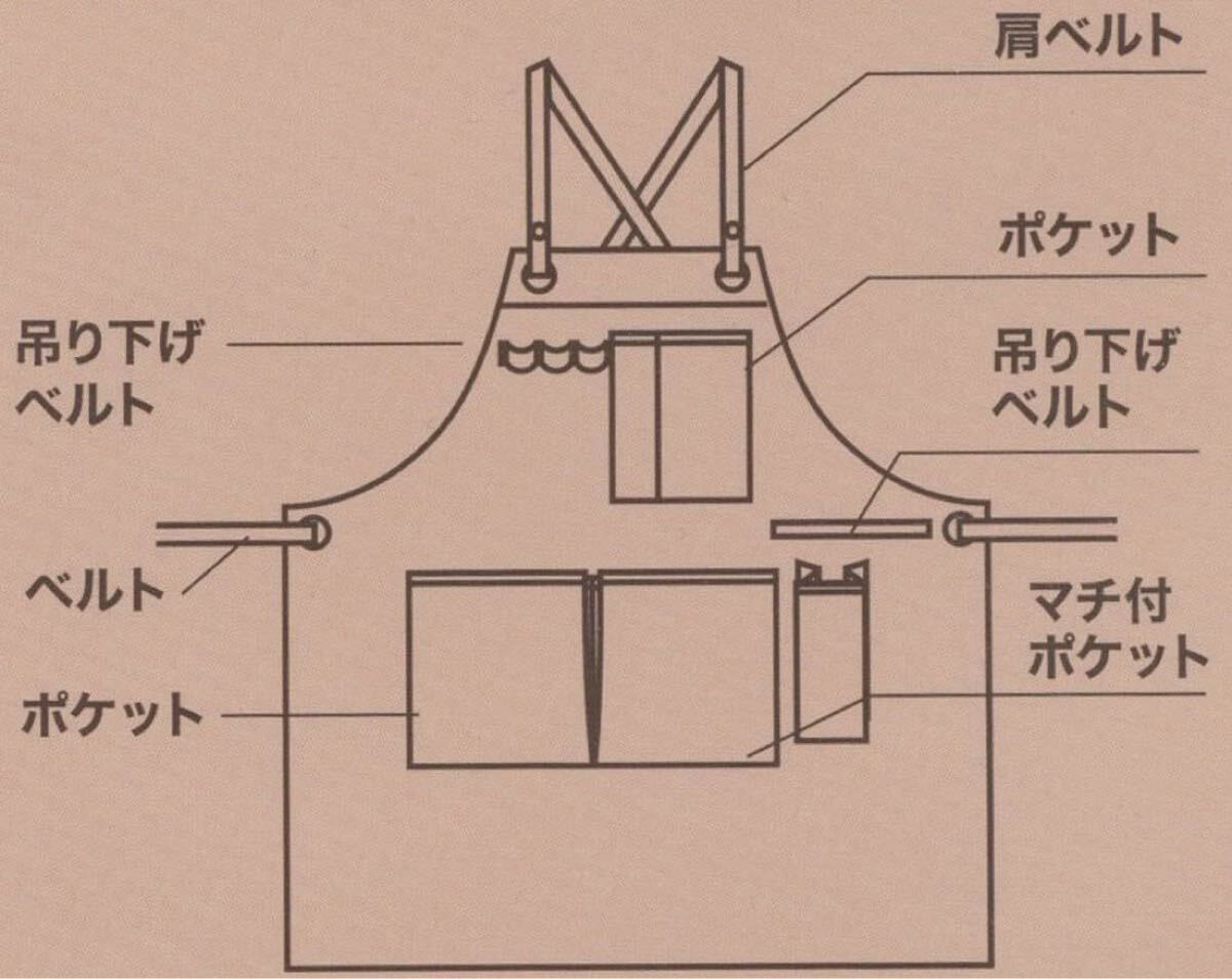 ツール類や小物等をたっぷり収納できる、キャンプやガーデニングに便利なエプロンです。