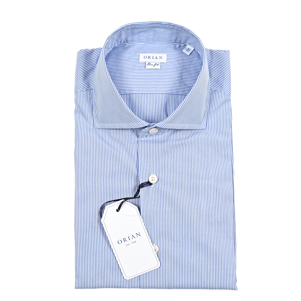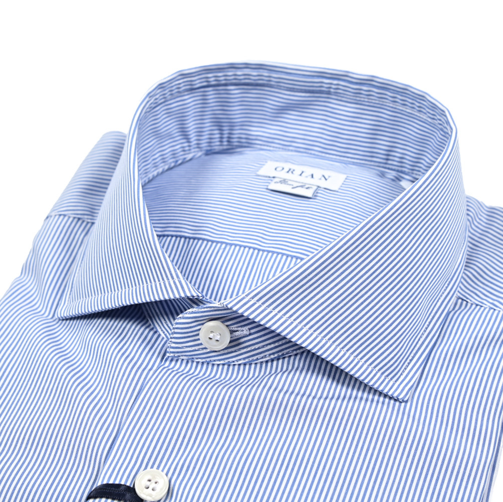 | オリアン ORIAN SLIM FIT ドレスシャツ ワイシャツ ホリゾンタルカラー 長袖 オールシーズン メンズ コットン 100% ストライプ ブルー | |