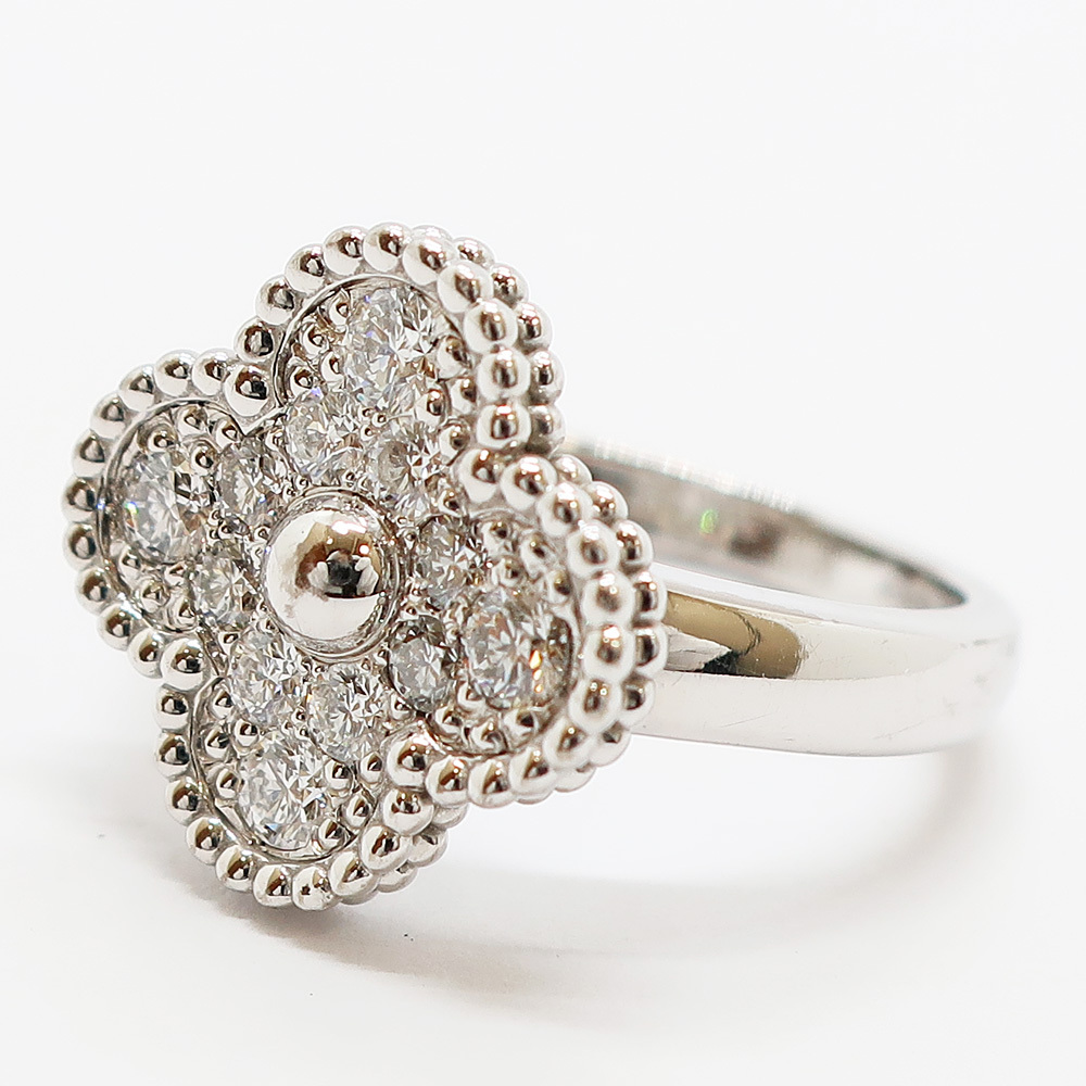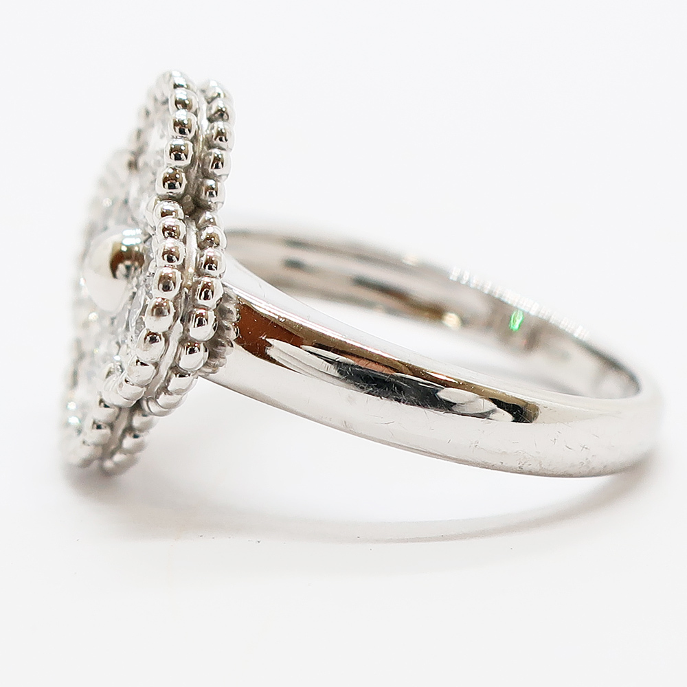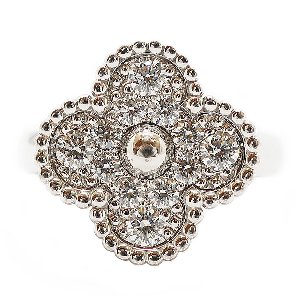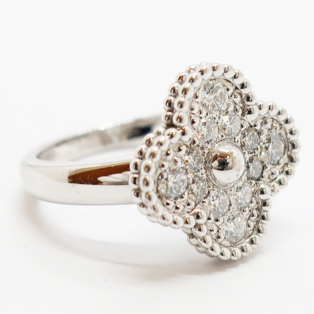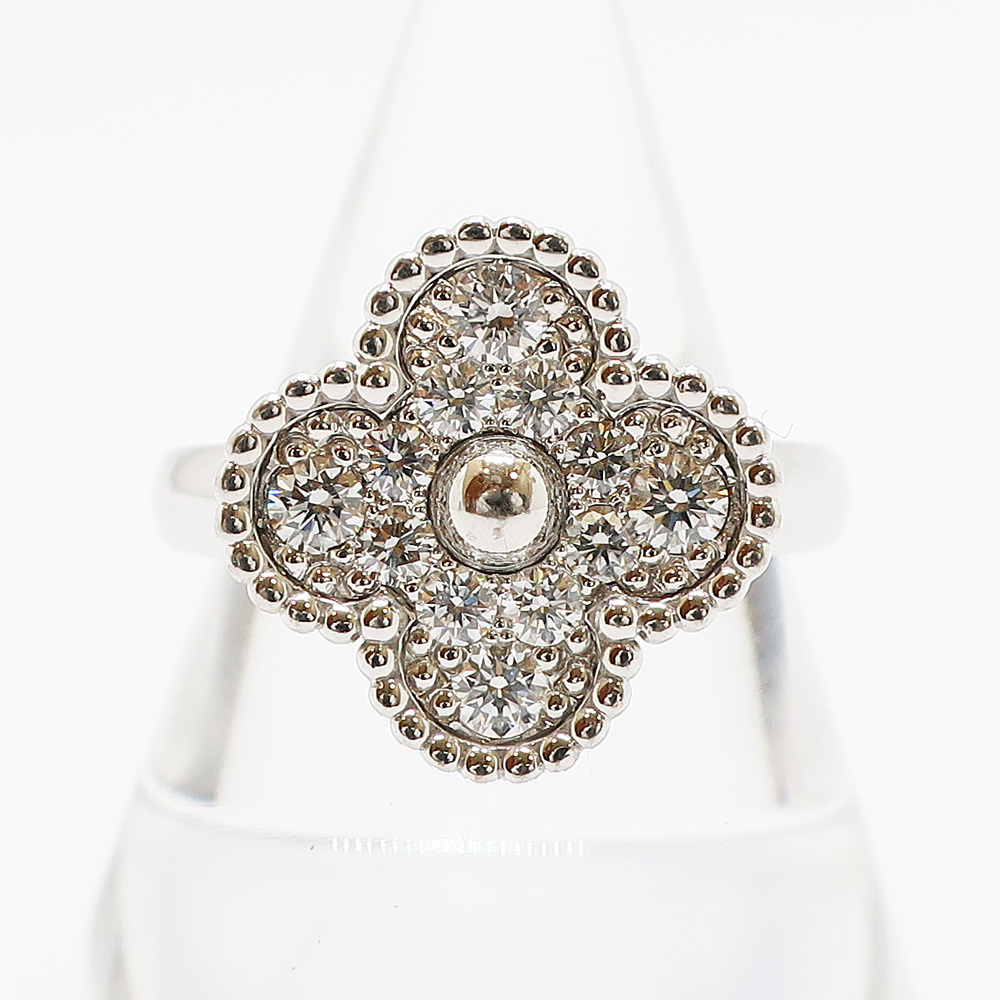 【天白】ヴァンクリーフ ヴィンテージ アルハンブラ リング 750WG ダイヤ VCARO26N00 #51 ジュエリー ホワイトゴールド