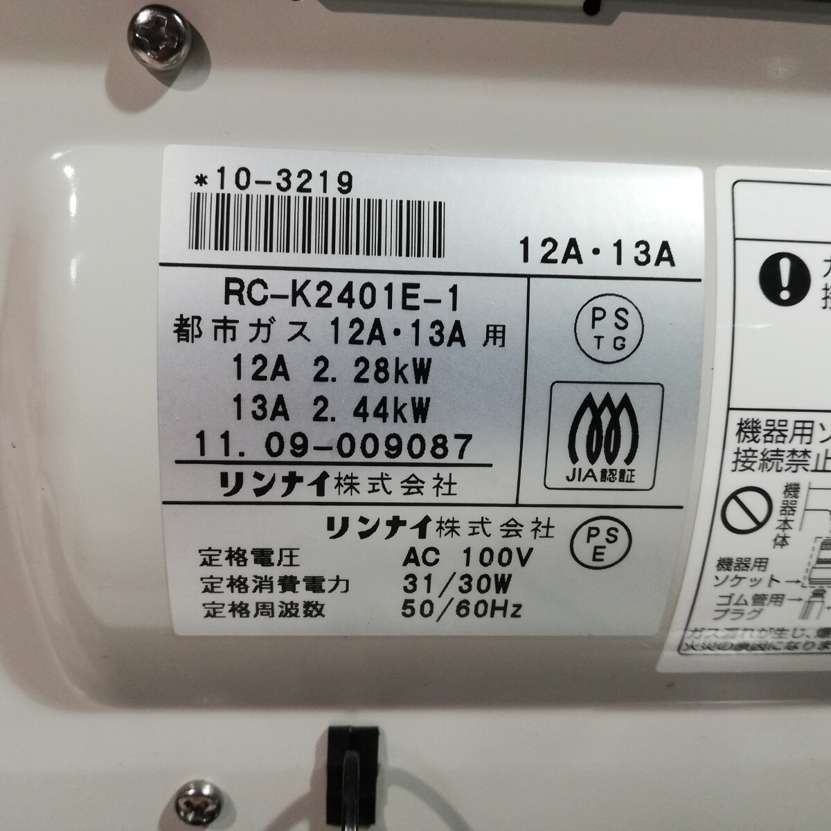 管42【動作確認、中古現状、東大阪市渋川町引取大歓迎】Rinnai リンナイ ガスファンヒーター RC-K2401E-1 都市ガス 多数出品中