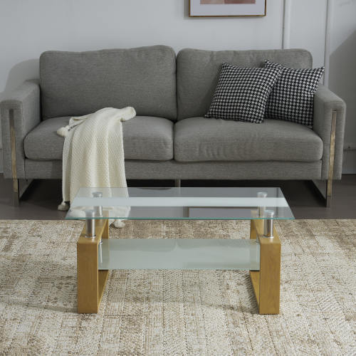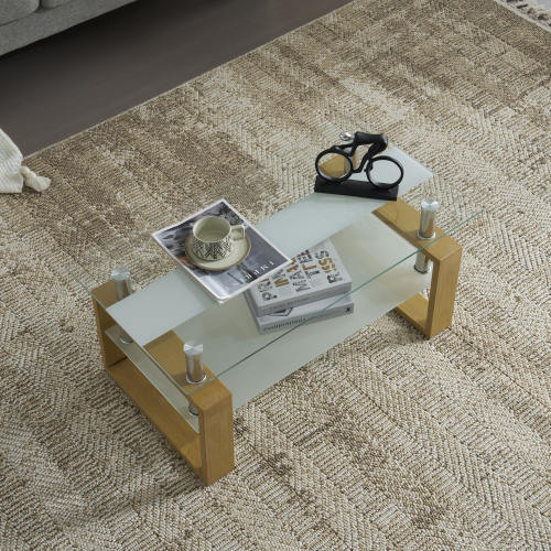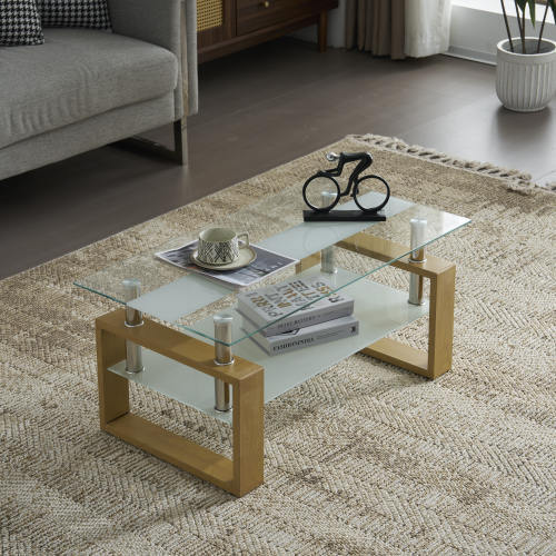 ユニークなテーブル脚のデザイン:口字型のテーブル脚デザインを採用し、この革新的な構造はテーブルに現代的な感性を加えつつ、優れた安定性を提供します。使用中の安全性と信頼性が確保されており、安心してご使用いただけます。高品質なガラス:強化ガラスを使用しており、より高い強度を持ち、割れにくい設計です。万が一破損しても、ガラスは鈍角の小さな粒に砕けるため、怪我のリスクを最小限に抑えます。表面は処理されており、簡単にお手入れが可能です。シンプルな美学:全体的なデザインはシンプルで洗練されており、余計な装飾はありません。口字型の脚部とガラス天板の組み合わせは、簡潔感と美しさを持ち、どんな家庭のインテリアにも自然に溶け込み、空間のハイライトとなります。広々とした実用性:広い天板は十分なスペースを提供し、茶器や果物、書籍などを自由に配置することができます。これにより、生活の利便性と快適性が大幅に向上します。展示式収納の楽しさ:ガラス天板の下に、様々な小物や雑誌などを収納できる棚を設置しました。棚と天板の距離は絶妙で、物の取り出しがしやすく、生活のニーズに応えます。