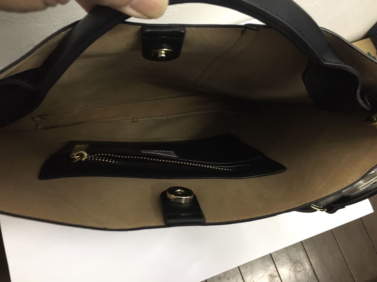 フェイクレザーなので軽量で、持ち手がトートにもショッルダーにもでき便利です。