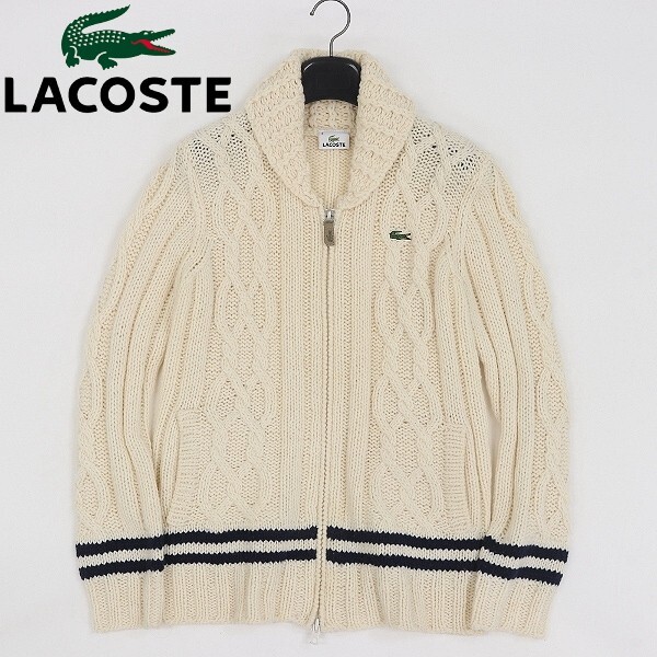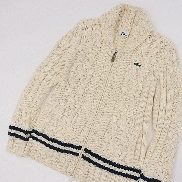 | 【HA696】◆LACOSTE ラコステ ロゴワッペン ケーブルニット ショールカラー Wジップ カーディガン オフホワイト×ネイビー 4 | |