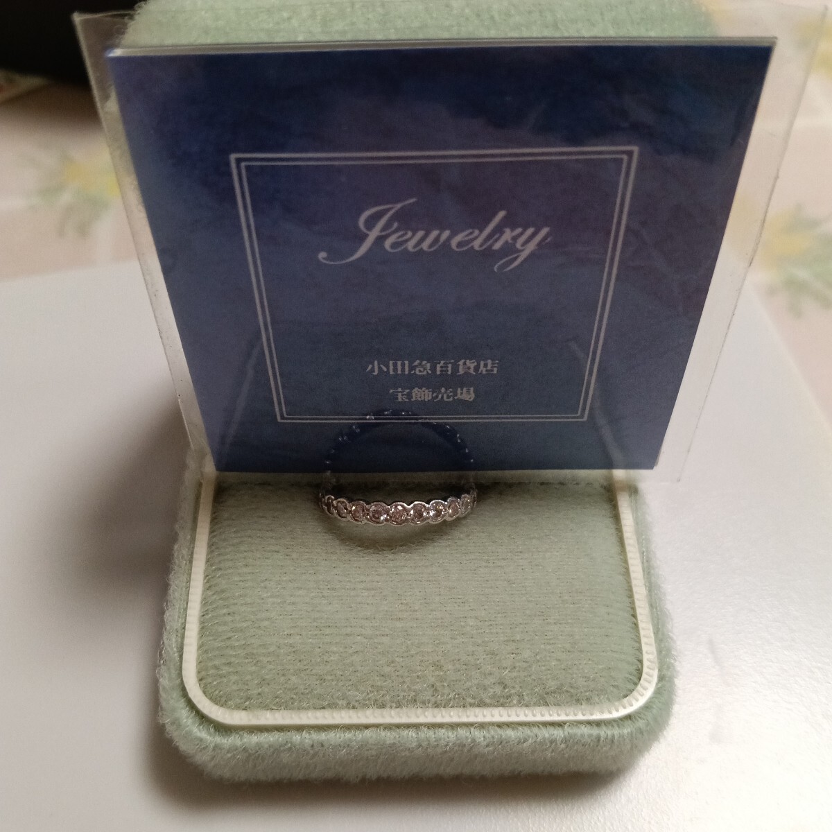 品番:NH-C-33473、pt900とダイヤ1.00の刻印があります。小田急デパートの品質保証書もあります。重量は約3.52gです。