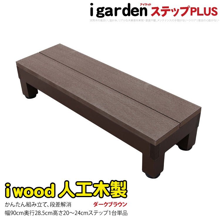 igarden アイウッド デッキステップ PLUS 踏み台 ダークブラウン 樹脂製 アルミ 人工木 階段 DIY 庭 屋外 花台 10385-1sdb