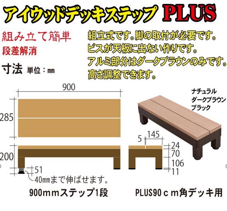 igarden アイウッド デッキステップ PLUS 踏み台 ダークブラウン 樹脂製 アルミ