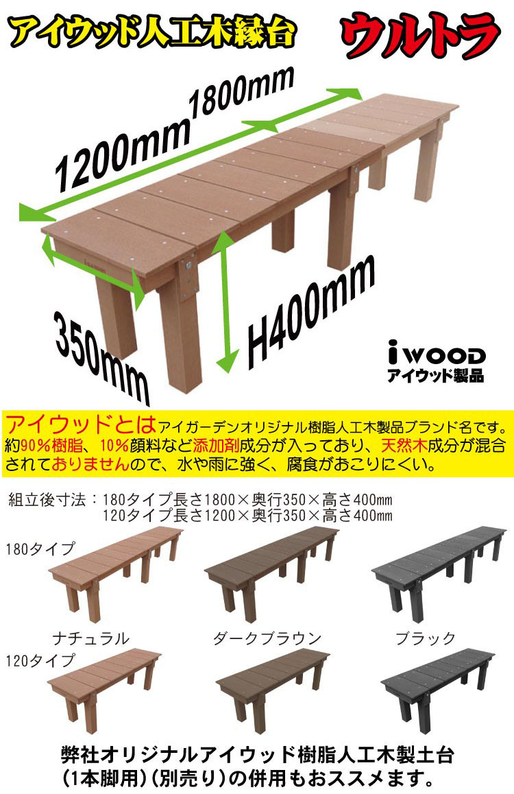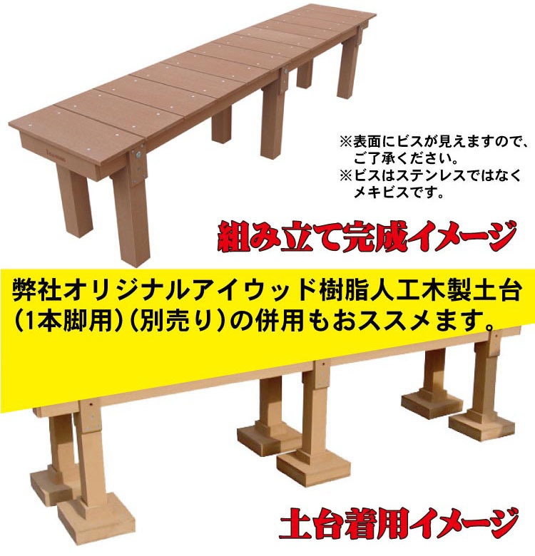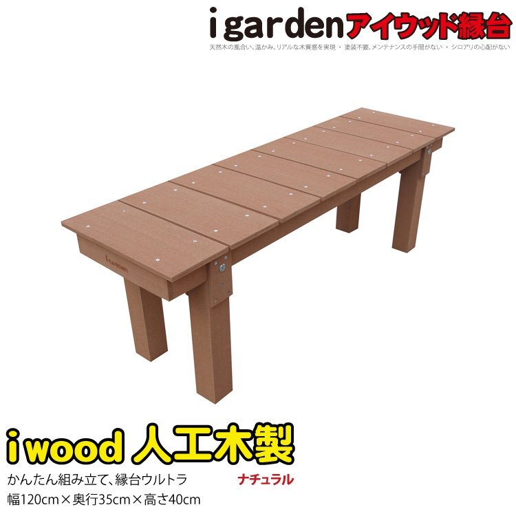 igarden アイウッド 縁台 ウルトラ 1235 ナチュラル 1200×350×高さ400 樹脂製 人工木 縁側 ベンチ 長椅子 腰掛け台 濡れ縁 10187