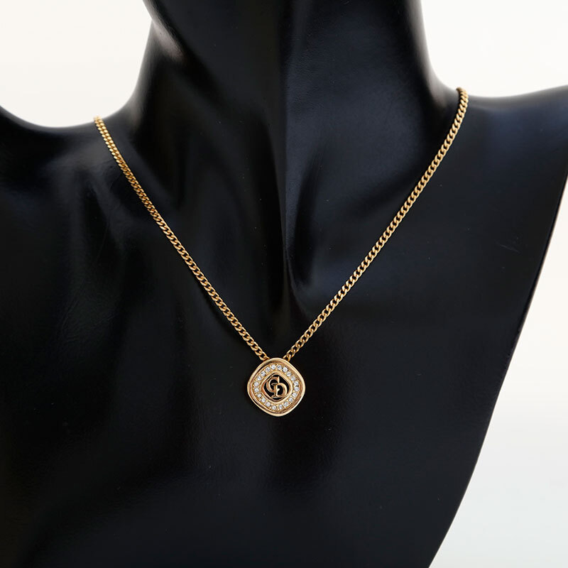 極美品 クリスチャンディオール Christian Dior CDロゴ ネックレス ゴールド WS23022