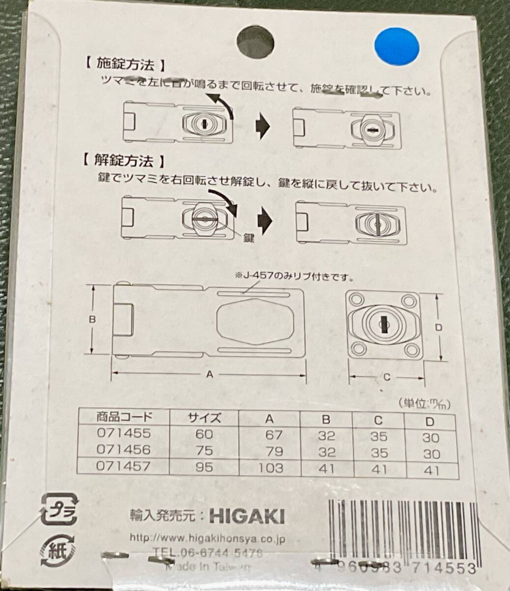 ハイロジックの「創造工房 鍵つき掛金錠 60mm」。 未開封品です
