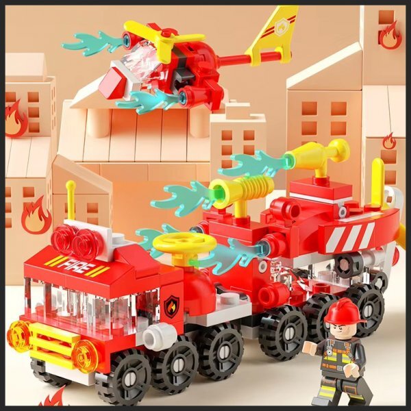 消火作業消防車の変身ブロックの組み立てセットです。