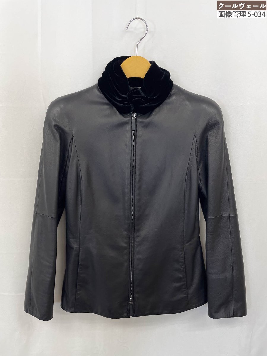 2021年製 超美品【ジョルジオアルマーニ】BAG07P BAP13 現行タグ 襟ベロア ラムレザー ライダースジャケット(レディース)38 黒◇17LB2020◇