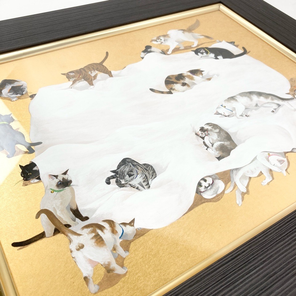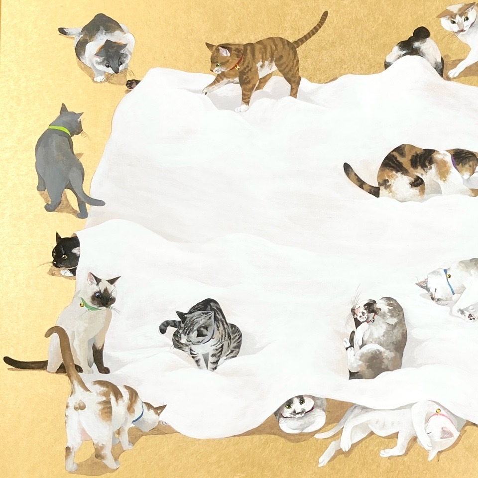 | 商品説明 | 本品は、現代美術作家 小宮絵莉 による作品 「ねこいっぱい -かくれんぼ-」 でございます。 ユーモラスで愛らしい猫たちをモチーフとした画風は、独自の世界観をもって多くのファンを魅了しております。 本作も生き生きとした猫たちが描かれており、インテリアアートとしても心を和ませる逸品です。 |