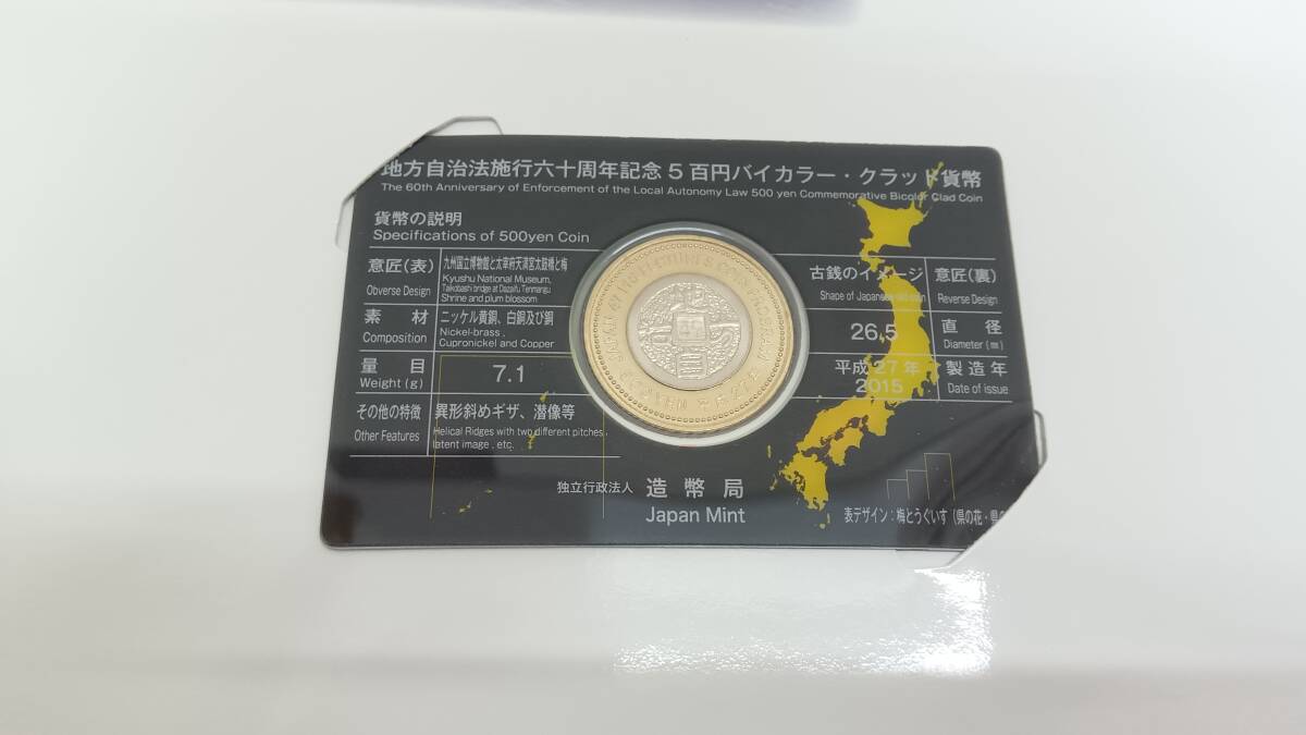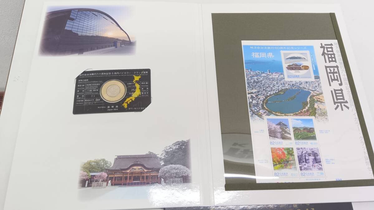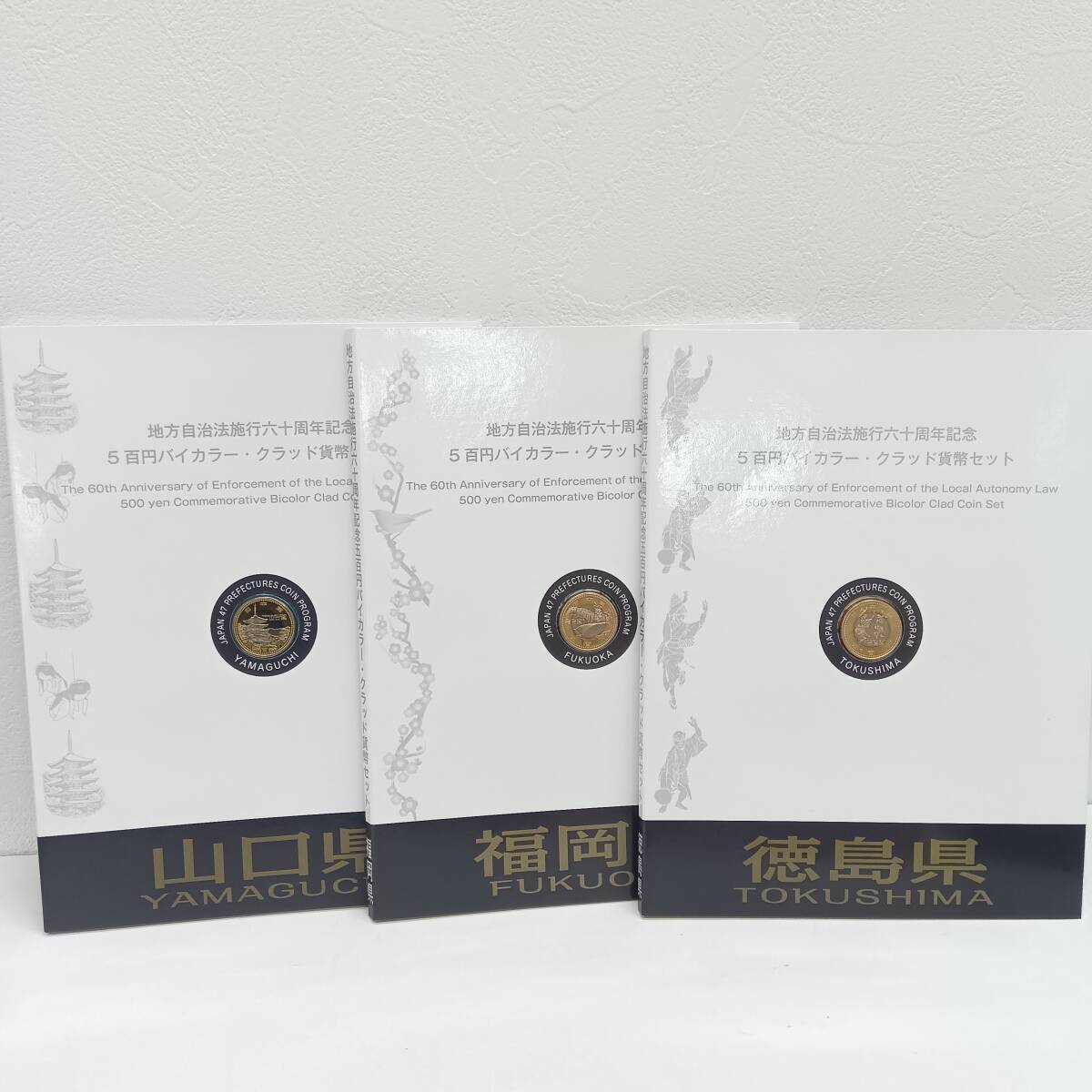 □地方自治法施行60周年記念 バイカラー500円+82円切手セット (山口・徳島・福岡) 額面1500円分 記念硬貨 記念切手□