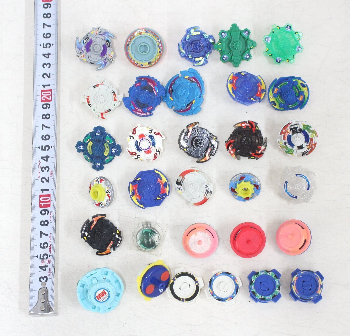 細かい確認しておりませんが、破損のあるパーツやパーツが欠品している物・ベイブレードではない物等もあるかもしれません。