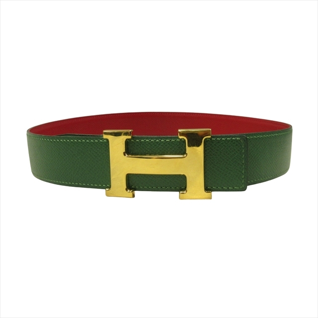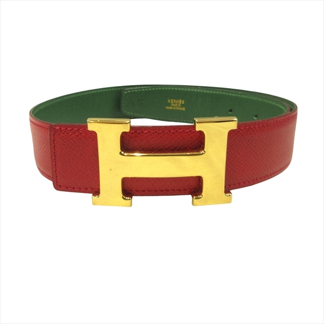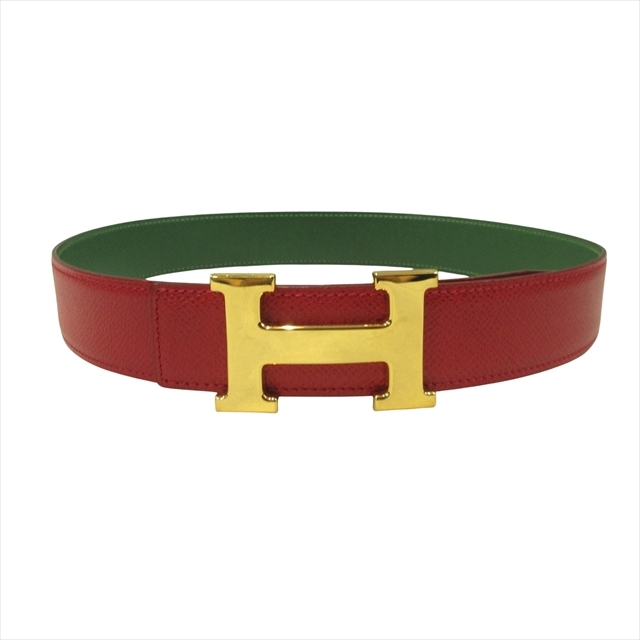 エルメス HERMES 90's Hバックル リバーシブル ベルト トゴ レザー ○X刻印 1994年製 ヴィンテージ 85 レッド グリーン レディース◆7