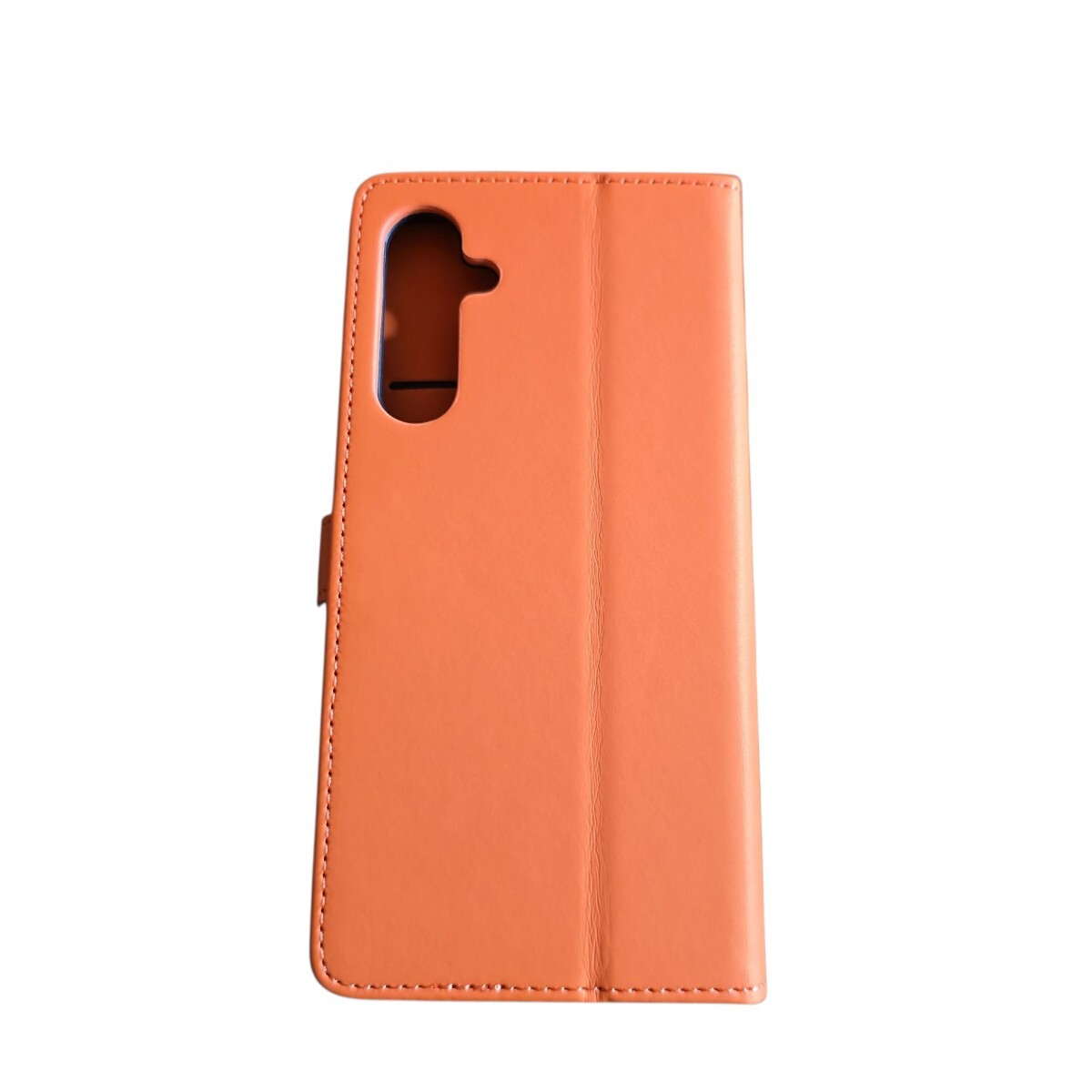 鮮やかなオレンジ色が目を惹き、ストラップ付きで落下防止にも役立ちます。内側にはカードポケットも付いており、機能性も兼ね備えています。